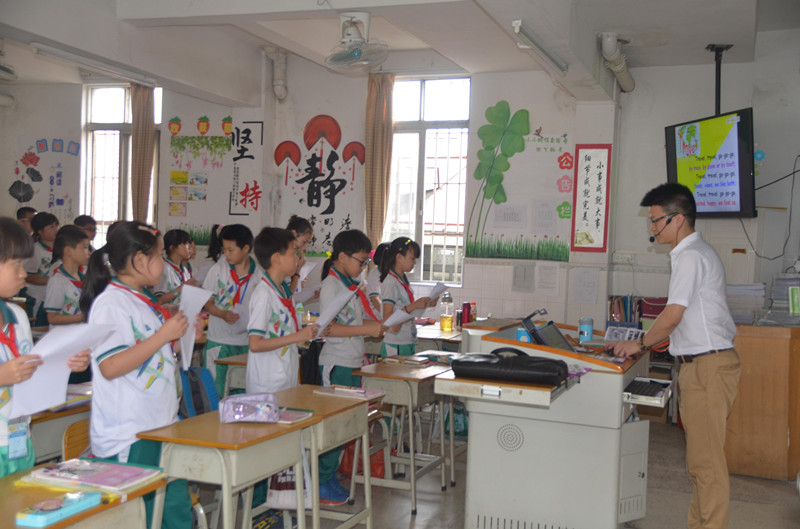 给五年级的同学们来上英语课的是林创森老师,他上课的内容是Unit 8 Ben's first trip to Beijing。