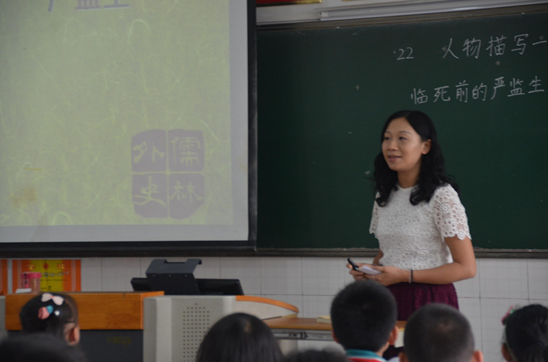 给五年级的同学们来上语文课的是刘妙玲老师,她上课的内容是《人物描写一组临死前的严监生》。