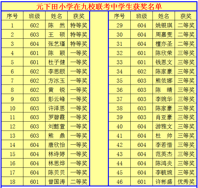 元下田小学获奖喜报