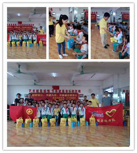 为扎实开展“关爱随迁的农民工子女”的志愿服务活动,充分发挥共青团模范带头作用和生力军作用,2017年4月20日,广州市从化区太平镇团委、联合高技园团委及鹰金钱团支委到我校进行了给外来工子女送温暖、献爱心、赠礼物的活动。