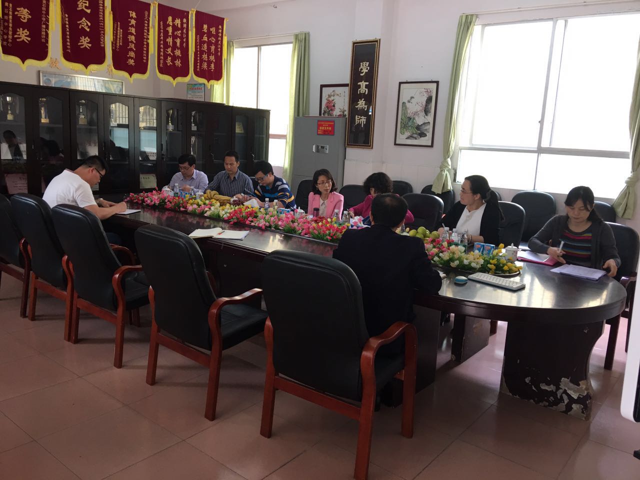 早上7:50分,专家组的成员开始陆续到达学校了。8:10分,在区发展中心办公室梁慧琴主任的主持下,专家组7名成员和龙江中学的行政,聚集在接待室召开了汇报会。学校强新举校长向专家组做了约四十分钟的学校工作汇报。