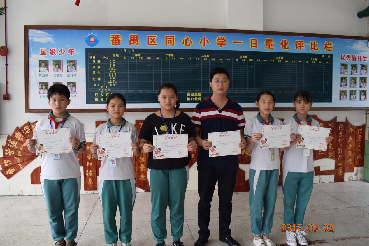 号外!号外!我校美术社团在美术组符林博老师带领下,再创新绩。本次参加教育局组织的千人书画大赛中,有6人次获奖,其中604班冉蕊琦获小学绘画一等奖,604班苏玲、503班刁顾云获小学绘画二等奖,601班王雅欣获小学绘画类三等奖,605班肖瑞辉荣获小学书法二等奖,符林博老师被评为优秀指导老师。
