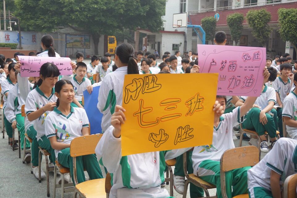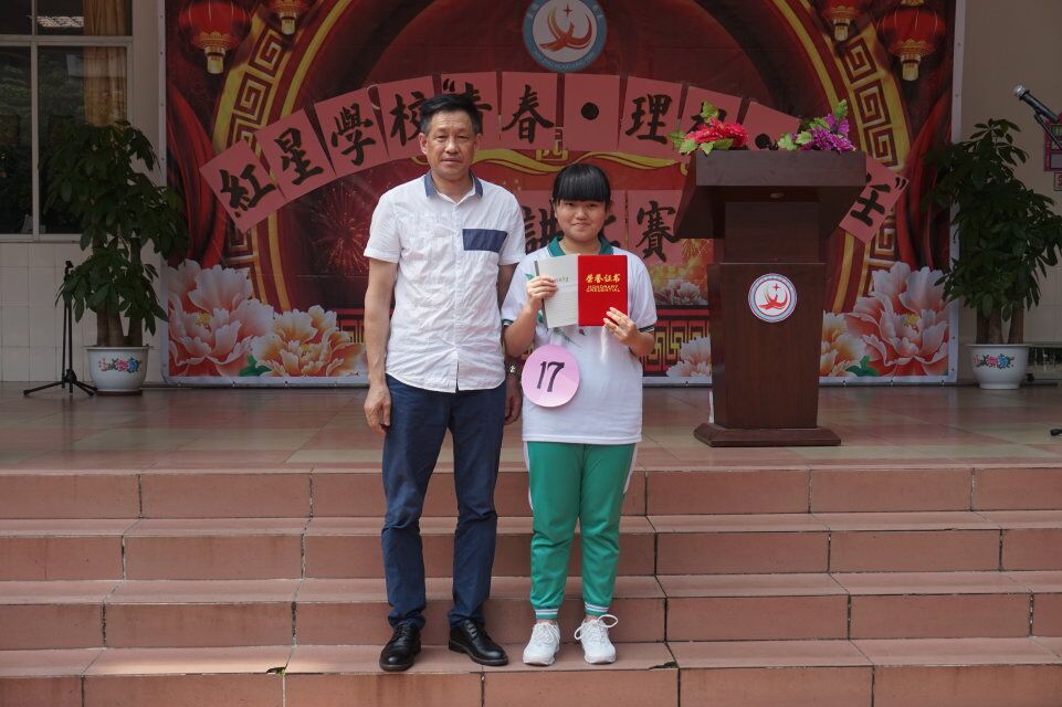 11日上午8:30,太阳早已裂开嘴,嘻嘻哈哈地温暖着大地,初中部各班的加油团坐满了红星学校的操场,营造出热闹的现场气氛。18 位同学,每一个同学都用自己的方式感染着在场的每一个人,让自己的理想震动大家的心灵,并讲述自己的计划。听,有的向大家讲述了自己作为初三毕业生的经历,从句词中都能让大家理解毕业生的压力和努力。有的憧憬着成为作者的美好生活,用那笔尖书写优美的文字,记叙感人的故事,倾诉自己的真情实感,多么美好啊!有的用满腔热情讲述“中国梦”“我的梦”。