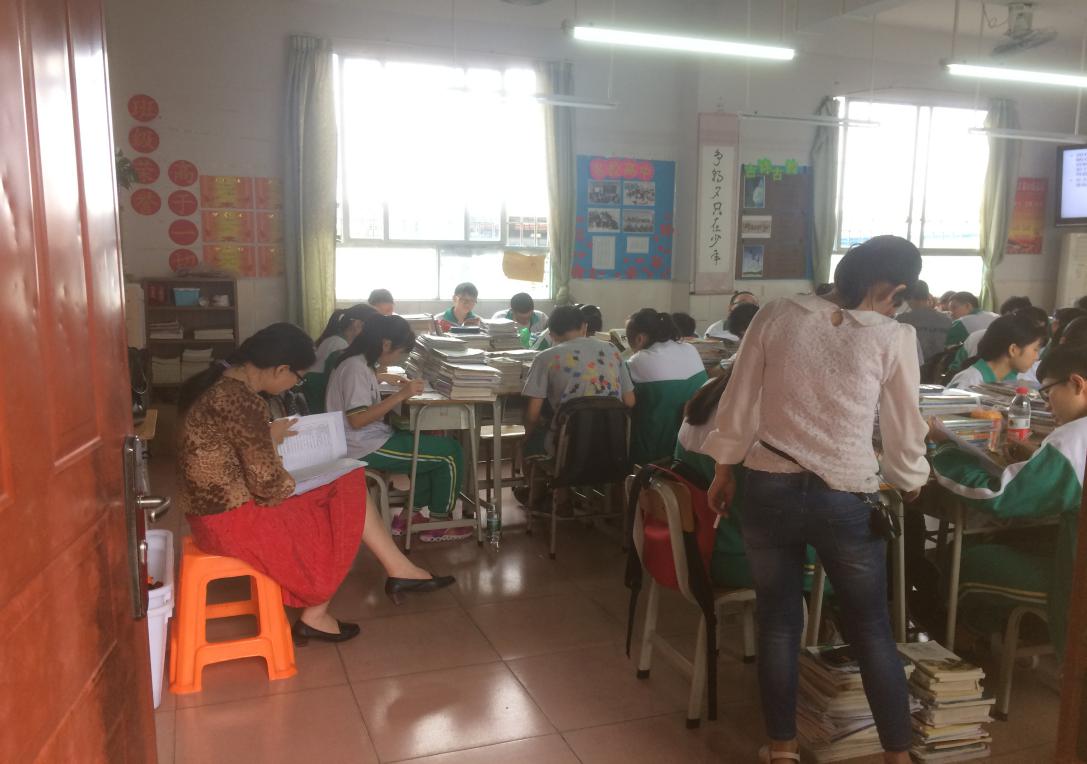 (学片政治学科中心教研组长谢会虾老师在901班听课)