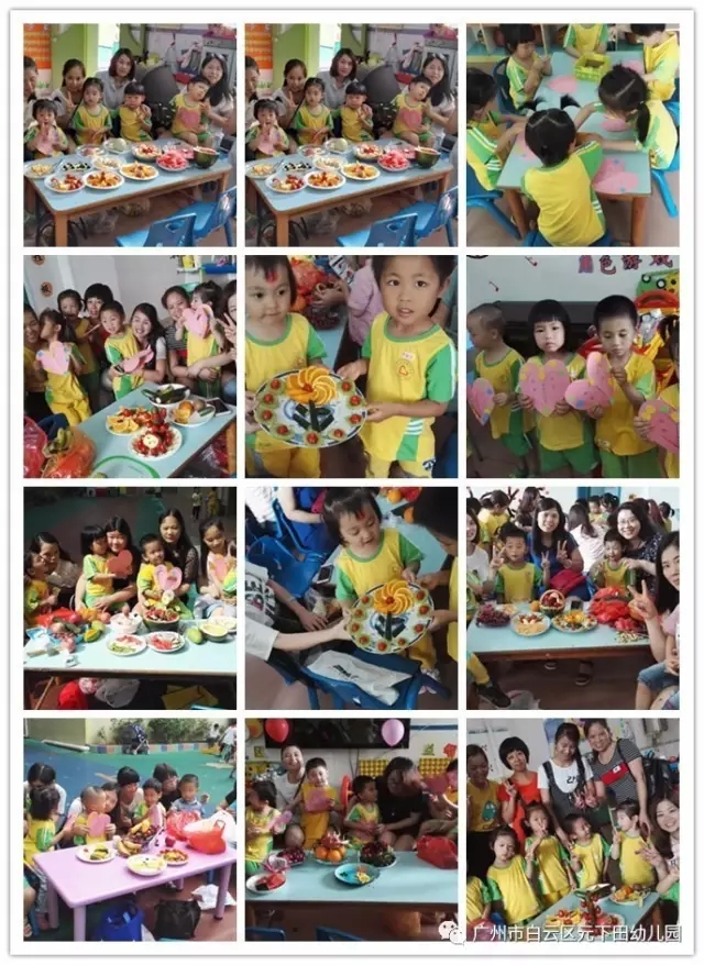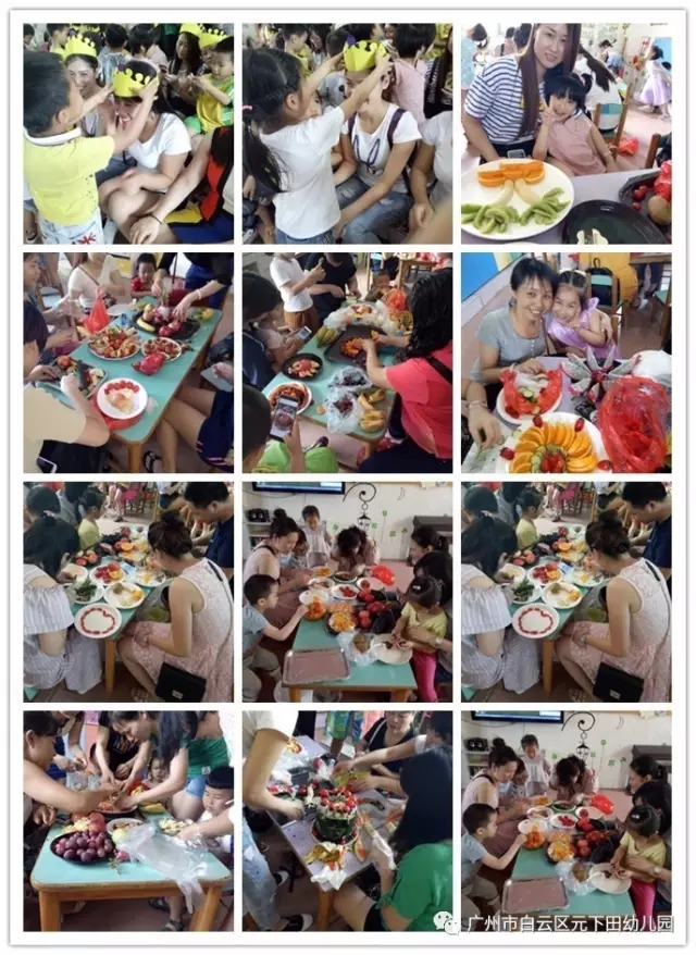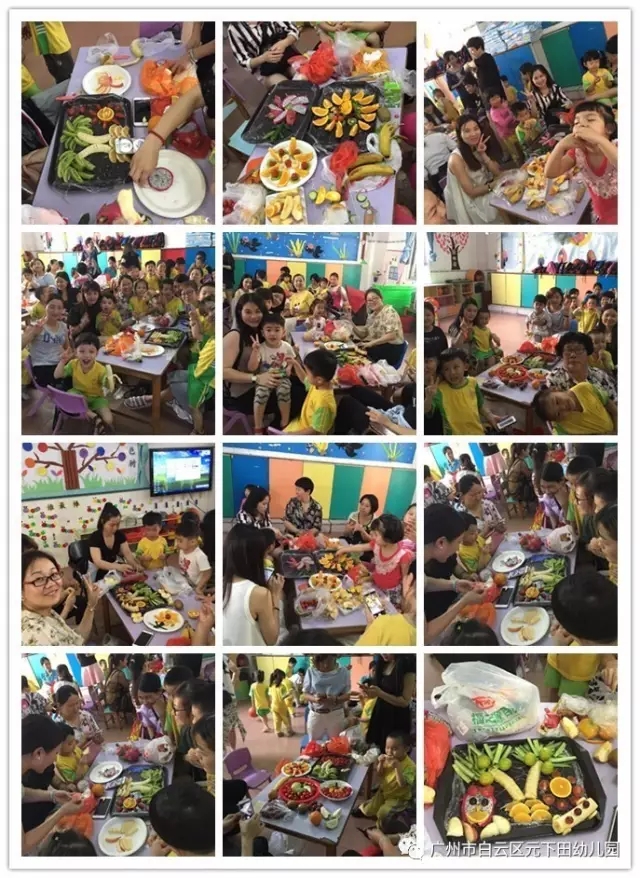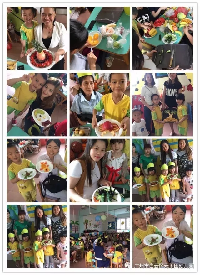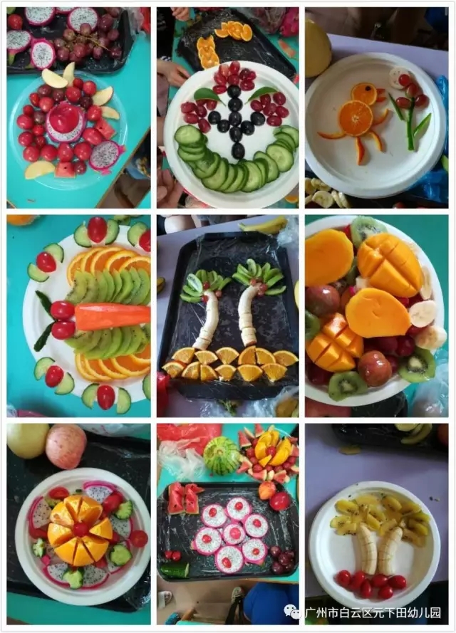 通过本次活动不仅激发了幼儿的想象力、动手操作能力。也使每位家长与幼儿都默契配合,有的削果皮、有的切果粒,还有的在进行拼盘,一盘盘如画般栩栩如生的水果拼盘展现在大家面前,一幅幅作品让人目不暇接。