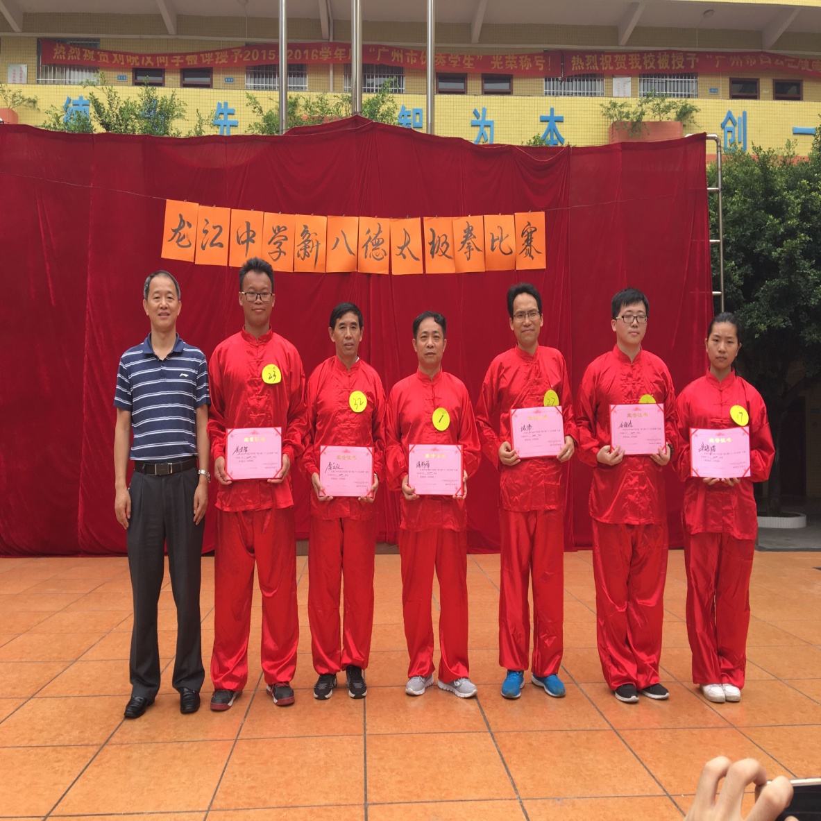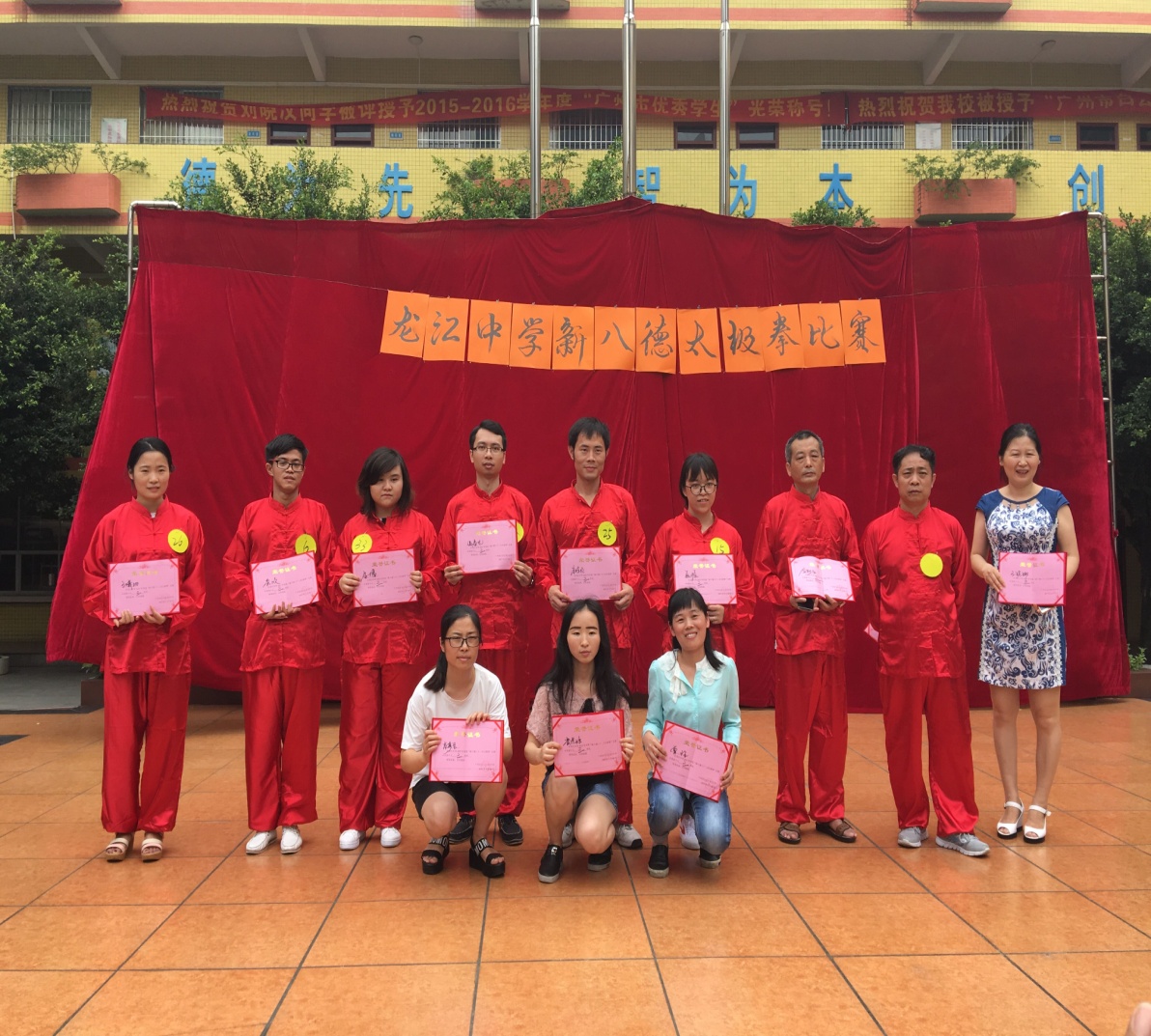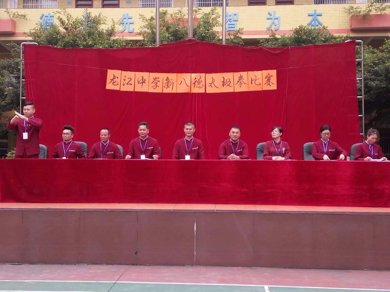 大赛分为三个部分:进场、太极拳展演、退场。大赛展演由教师和学生们共同完成。赛前,各年级的班主任老师利用课外活动时间积极组织学生训练,纠正每一个细小的动作,体育老师也积极配合,认真指导,同学们更是信心百倍。比赛中,学生们精神饱满,步伐整齐,口号响亮、动作到位、英姿飒爽,充分展示出龙江中学学生们的精神风貌。通过比赛,不仅丰富了同学们的校园文体活动,更强化了同学们自我锻炼的意识,锻炼了同学们的心理素质,增强了班级的凝聚力。每位参赛的老师在平时刻苦训练,赛场上尽显飒爽风姿。