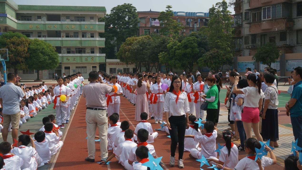在这“六.一”儿童节即将来临之时,我校迎来了2017春季少先队入队仪式暨家长开放日活动的到来。此次活动的主题是: “童心跟党走,红歌伴我行”,共有近千名家长参与。家长们对“入队仪式、期中表彰、红歌演唱”等三个环节的活动,给予了高度评价。特别是红歌比赛,高潮迭起,此起彼伏,同学们歌唱祖国,抒发豪情,放声歌喉,释放激情。