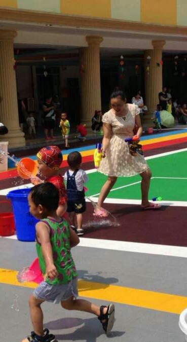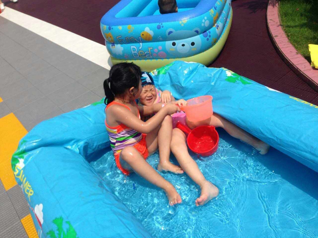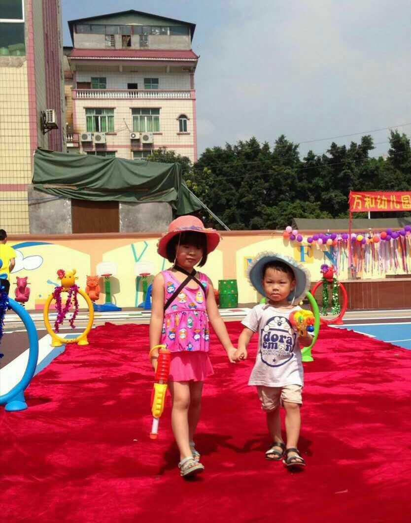 太阳的热情让我们受不了了,还是提前进入亲子泳装秀吧!