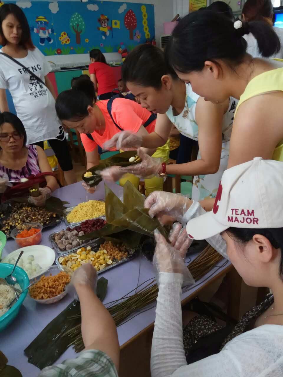 本次活动得到了家长的大力支持,每个班的家长自发组织,并分工明确:谁洗糯米,谁刷粽叶,哪些带肉馅的,哪些带板栗,哪些带香菇......每个班级群因为包粽子而热闹非凡,每位家长因为包粽子而心连心,因为家长和老师们的心愿一样:把活动组织好,和孩子们过一个开心的端午节!