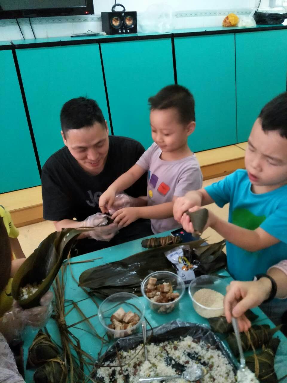 今天(五月初五),是我国的传统佳节——端午节!为了庆祝这一伟大的节日,我们龙步幼儿园在端午放假前夕,举行了大型的亲子包粽子活动。