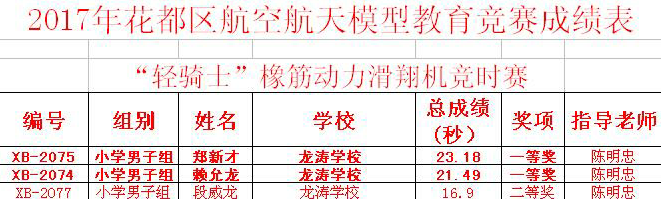 热烈祝贺我校学子在2017年“飞向北京—飞向太空”全国青少年航空航天模型教育竞赛花都区预选赛和2017年“我爱祖国海疆”全国青少年航海模型竞赛花都区预选赛中喜获佳绩,其中郑新才、赖允龙、冼荣睿、李润楚、程一帆、文政宇、郭志鸿、彭宇等八位同学以优异成绩获得参加市赛资格。在此向为比赛付出辛勤汗水的指导老师和参赛队员道贺!向一直以来关心我校的社会各界人士隆重报喜!同时也预祝孩子们再接再厉,再创佳绩!