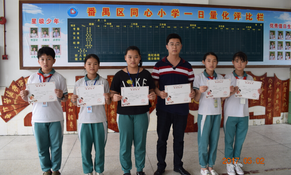 番禺区同心小学喜讯号外!号外!我校美术社团在美术组符林博老师带领下,再创新绩。本次参加教育局组织的千人书画大赛中,有6人次获奖,其中604班冉蕊琦获小学绘画一等奖,604班苏玲、503班刁顾云获小学绘画二等奖...