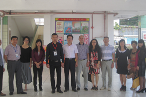 2014年10月29日番禺区教育局吴岳东副局长、基础教育科戴瑞红科长、市桥城区教育指导中心黎主任等领导来校检查指导工作,广东龙涛教育集团秦经理、李督学、唐总监陪同。