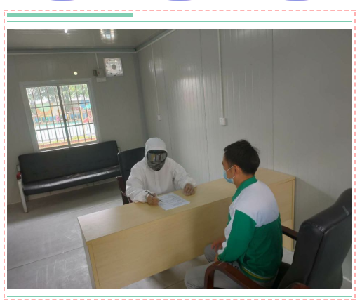 中午,班主任再次向全班学生发放健康登记表,并对每位学生进行体温测量,全部完成之后再逐一收回登记表。班主任必须做到每天进行晨检、午检,对缺勤学生进行电话跟踪,了解其具体情况,有异常情况及时向学校报告。