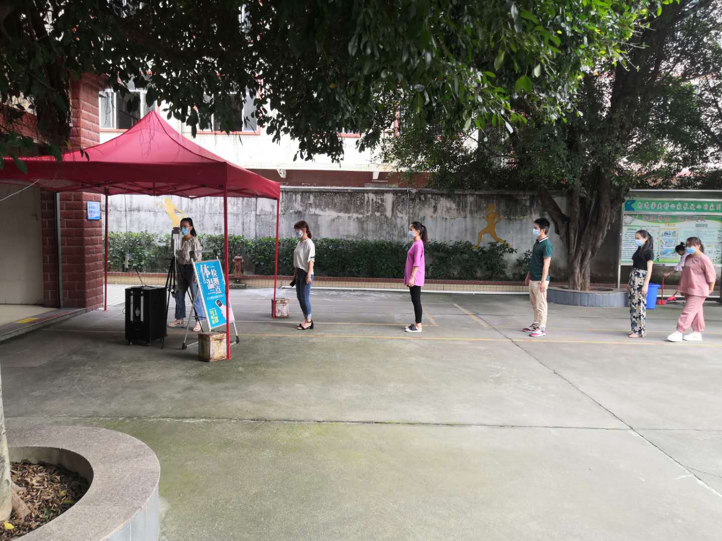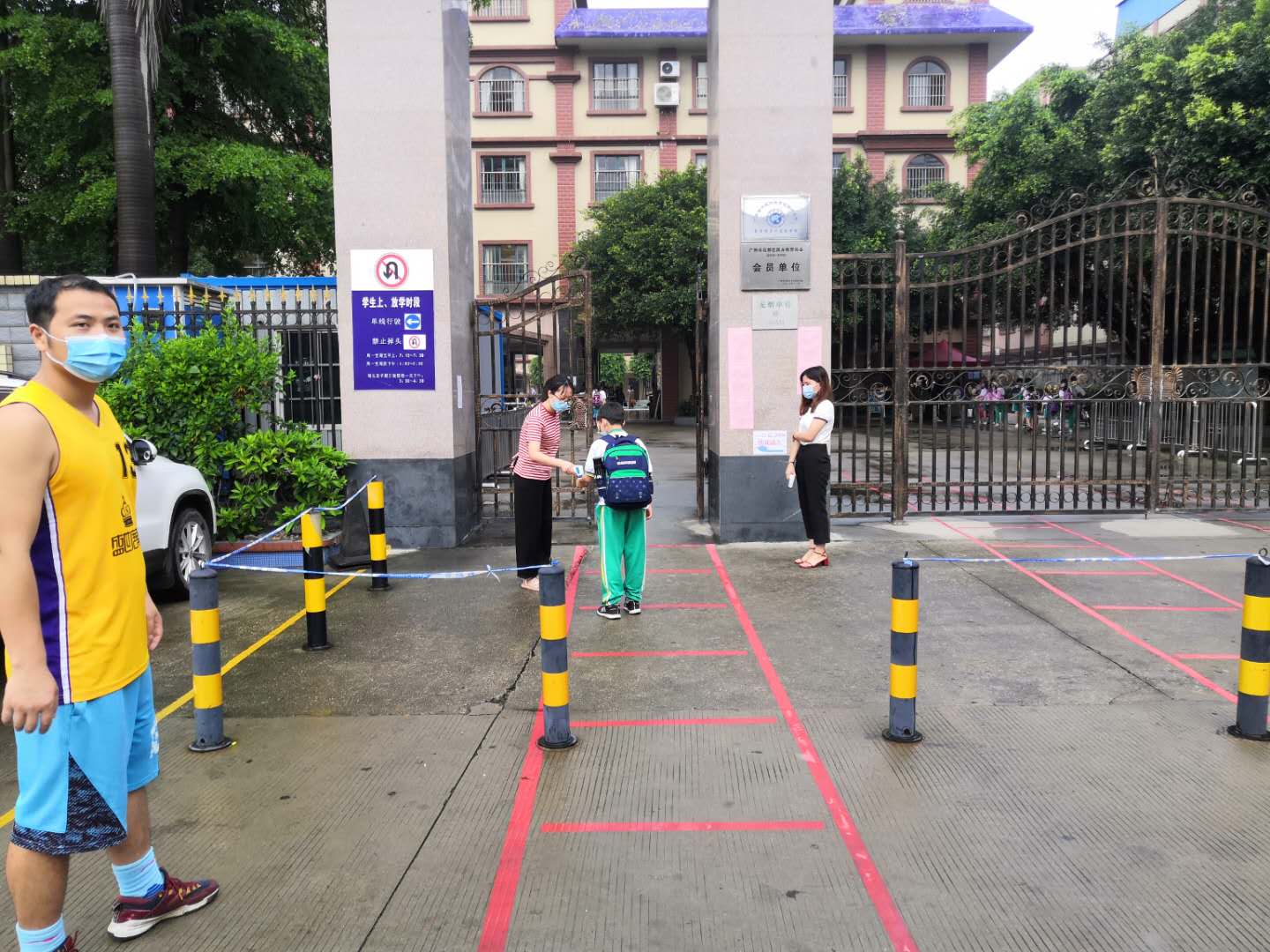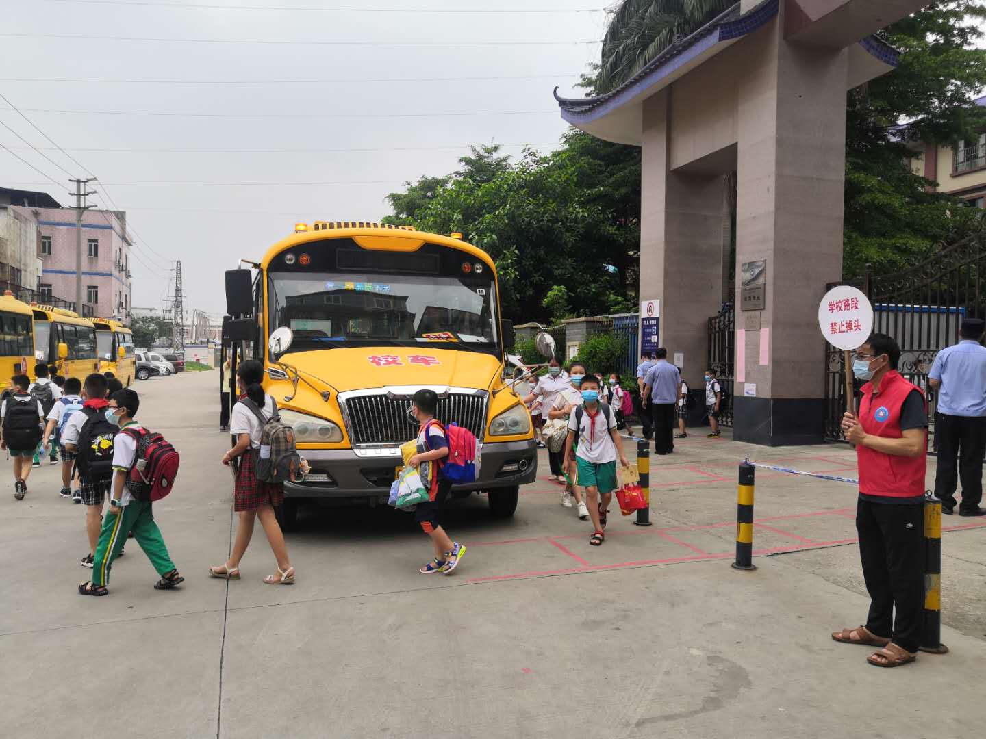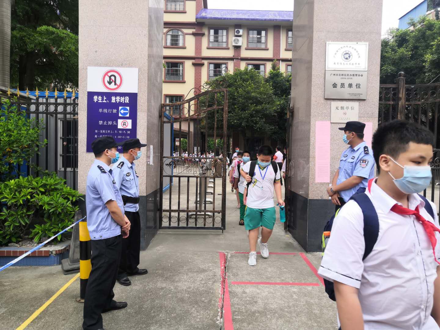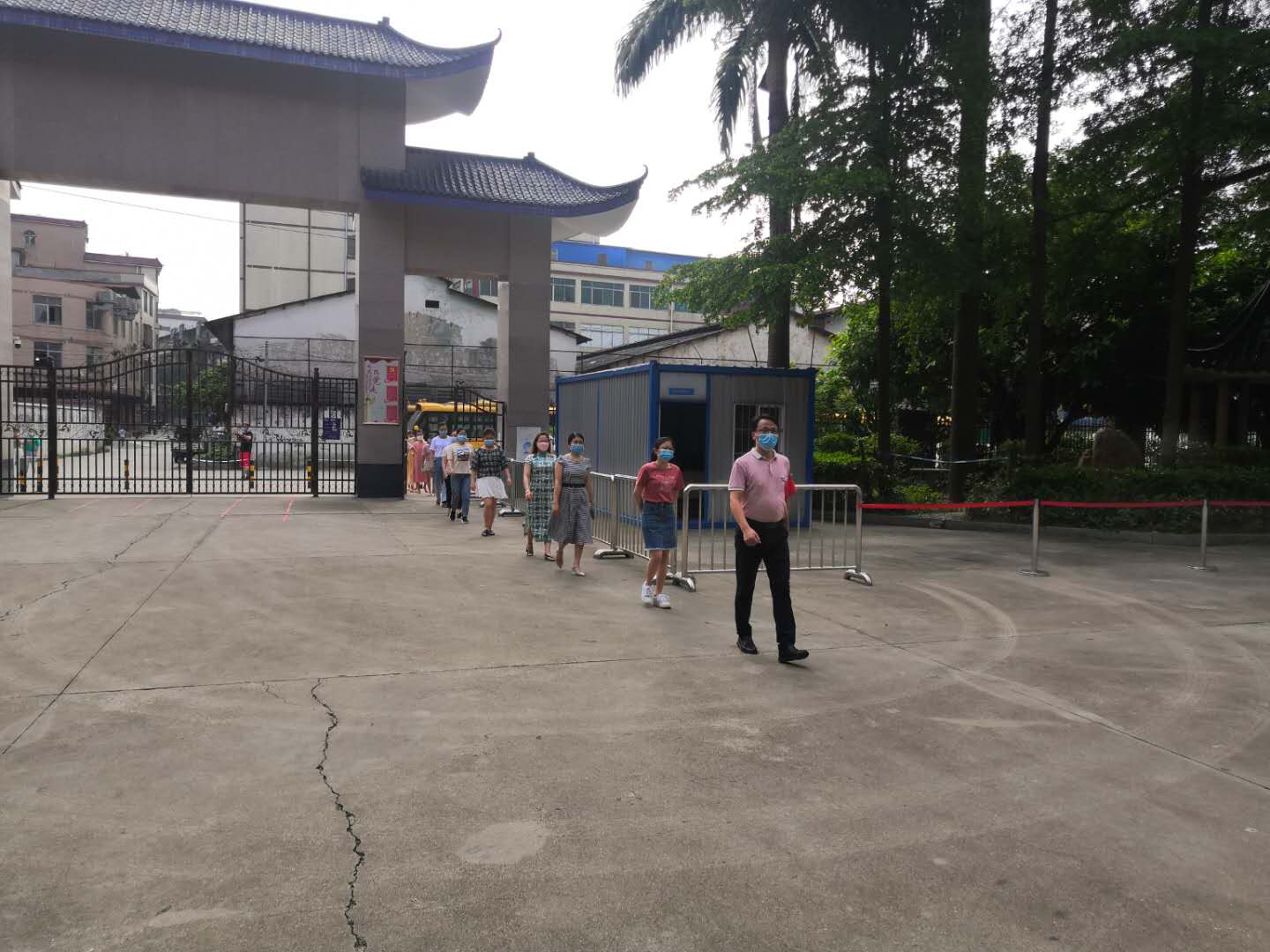 5月25号当天,上级教育主管部门、公安部门、卫生防疫部门、学校行政及值日教师、家长志愿者等早早齐聚学校大门口,迎接学生归来。