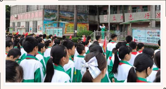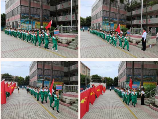 为加强仪式教育,学校门口悬挂大队旗,各中队门口悬挂中队旗。