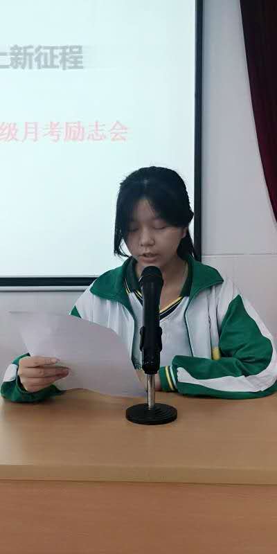 高喜阔主任主持并致开场白:为激励先进,树立典型,营造勤学上进的良好学习氛围,调动同学们的学习积极性和主动性,发挥榜样的力量,我们召开“迎接新中考,踏上新征程”之初三月考励志会,你们已迎来初中学业中最为关键的一年,老师的精心培育,家长的殷切期望,大家的勤奋苦读与美好理想,都将在明年的六月里绽放。”