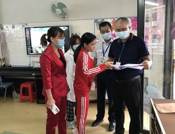 检查领导到达我园,首先对我园进行基本情况了解。其次到班级了解幼儿预防传染病工作情况,对幼儿园在卫生方面情况的记录及环境消毒情况进行了检查,对我园教室卫生清洁消毒做出了肯定。最后,检查领导到我园校医室,询问了校医校园内卫生检查及预防工作的注意事项,现场指导存在的问题及对做得好的方面进行了表扬。