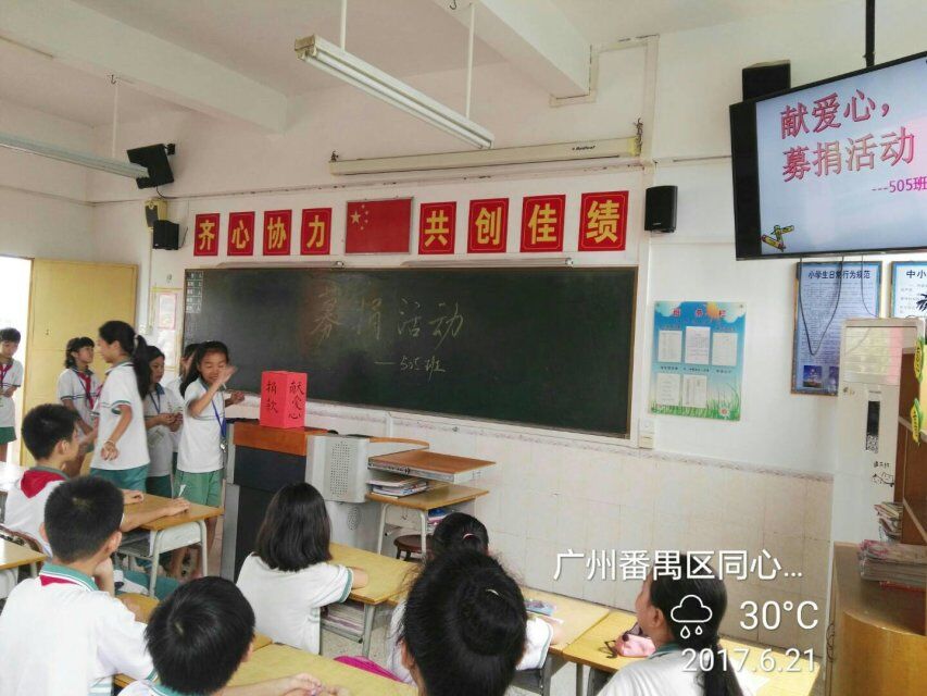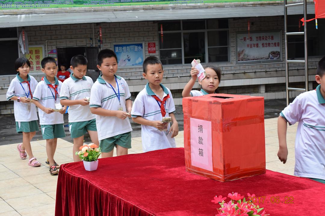 本次扶贫捐款活动分两个部分,首先由班级开展“扶贫济困、奉献爱心”主题班会,组织学生捐款,然后由少对部组织,向全体少先队员发出倡议,进行募捐活动。