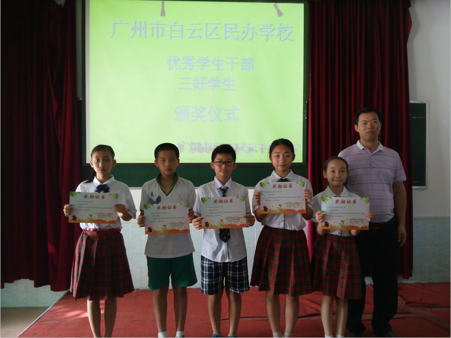这是一个令人难忘的时刻,也是一个激动人心的时刻,将要受到表彰是2016-2017学年荣获广州市白云区民办学校三好学生、优秀学生干部。他们以品学兼优、发奋有为的实际行动为我校全体学生树立了一面光辉旗帜,在自己求学路上写下了光彩夺目的一页,在人生旅途中留下了闪耀的光环。