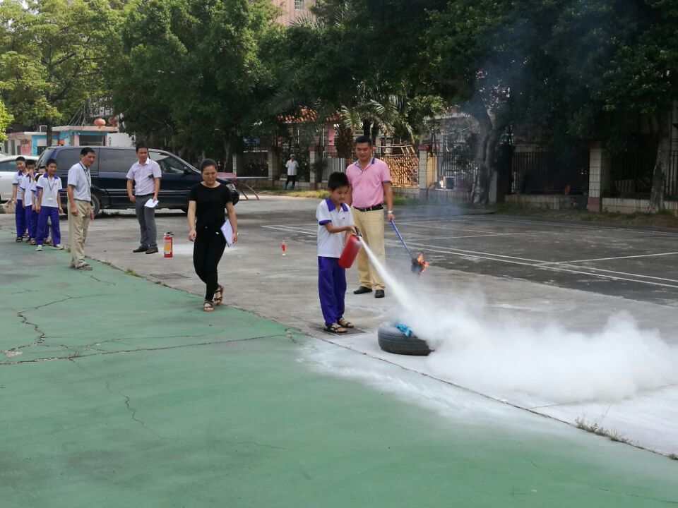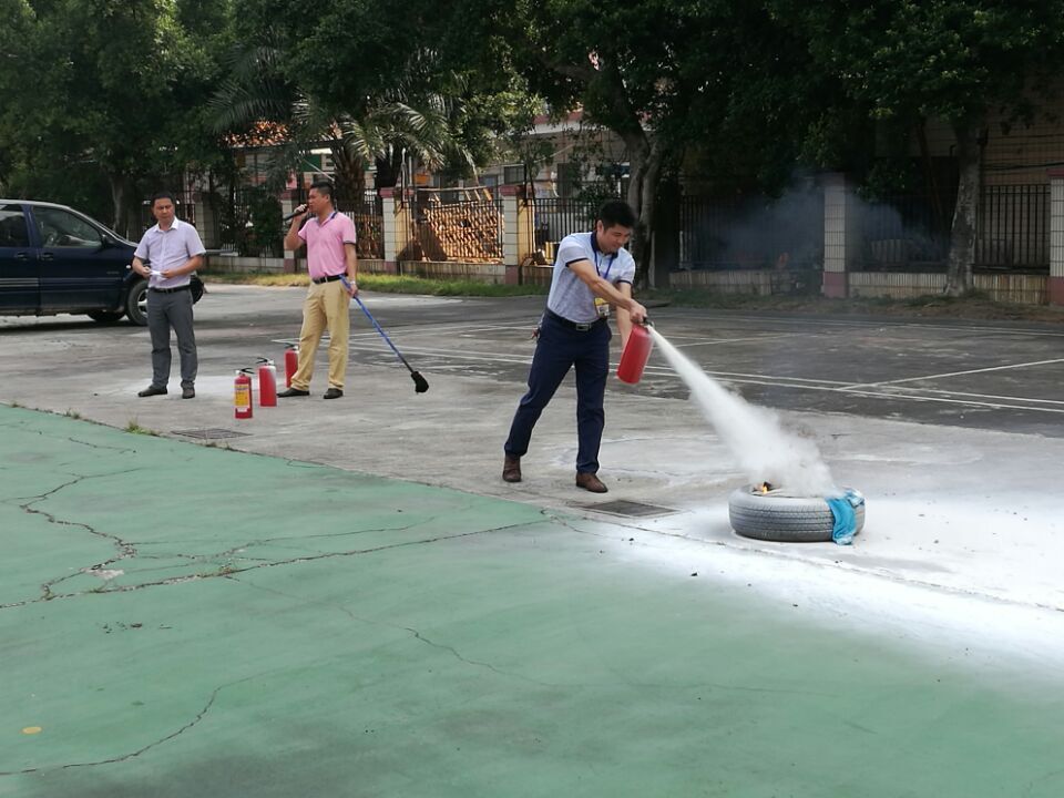 现场还实施了灭火演示,和灭火体验。首先由杜鹏辅导员对灭火器的使用做了专门的讲解和示范,接着全体教师以及各班级代表纷纷现场体验灭火器的使用,体验中,在熊熊烈火面前,因为有灭火知识的掌握和运用,老师和同学们都显的格外沉着。