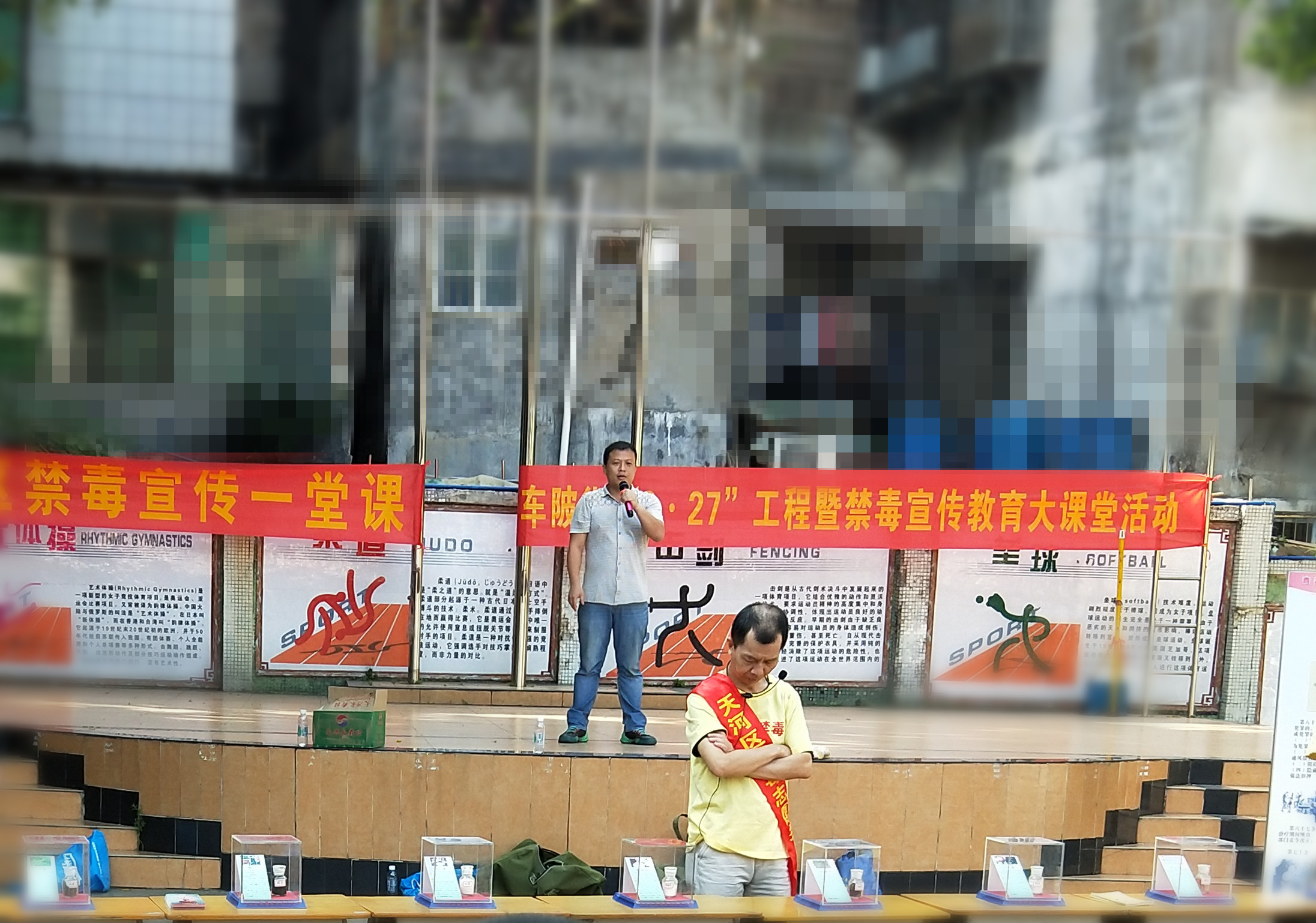 本次活动分两个部分进行。首先,我校政教处张主任做了动员讲话,他希望广大学生清楚认识毒品的危害,牢固树立“珍爱生命,远离毒品”的观念,树立正确的人生观、价值观,养成良好的生活、行为习惯,努力学习,积极进取,不涉足青少年不宜进入的场所,正确把握自己的言行与交友,以免走上歧途、误入毒海,并以你们的实际行动,带动家庭和周围的人抵制毒品。随后本次活动的宣讲人——天河区车陂街道禁毒办吴主任,向同学们阐述了有关毒品的种类、构成、常见毒品有哪些的相关知识。