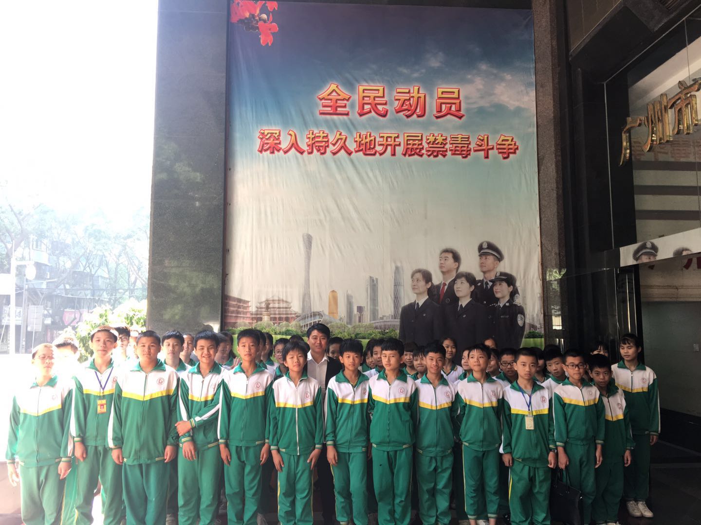 各班同学集中广州市禁毒馆大门口合影留恋。