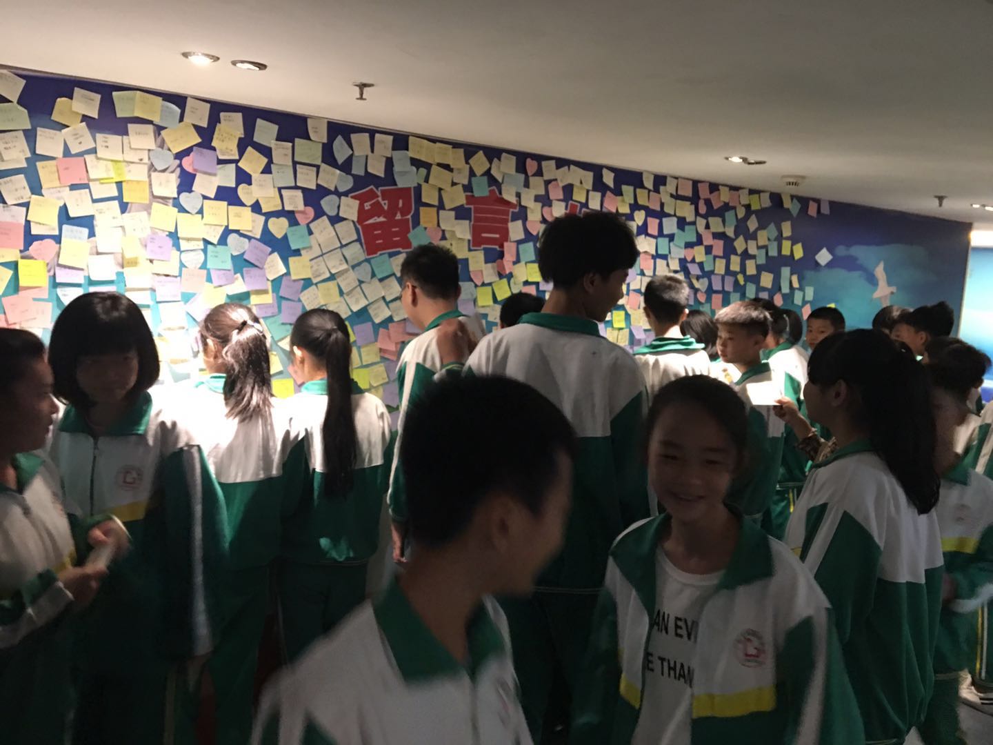 同学们对"吸毒后的你"相当感兴趣,争相拍照。但现实中千万不能变成那个样子啊!他(她)们庄重地在留言板上留下了拒绝毒品的诺言!