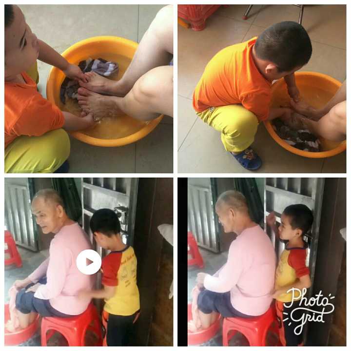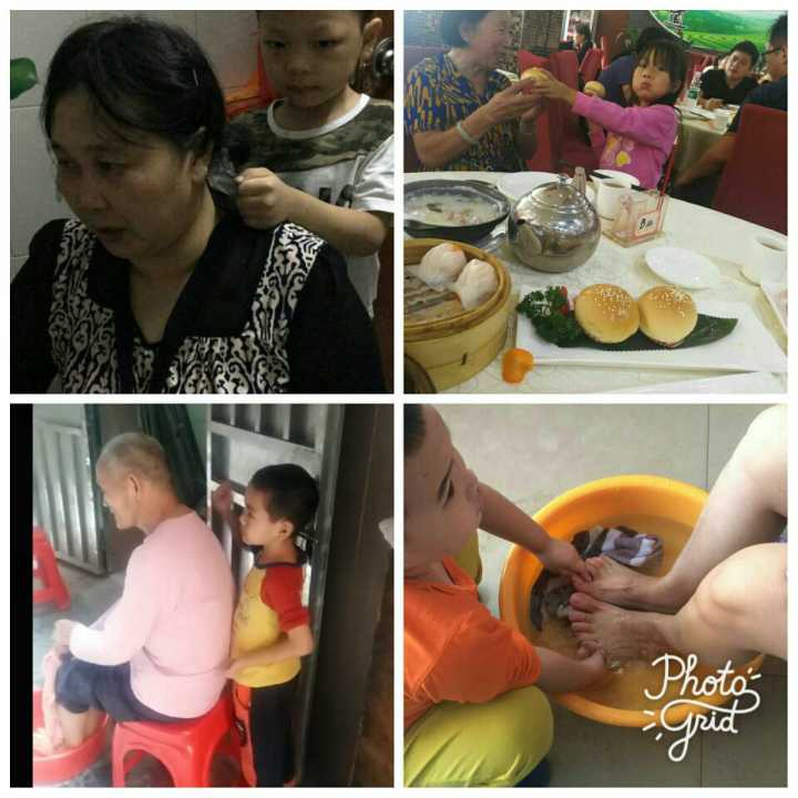 孩子们回家之后都忙着帮爷爷奶奶按摩捶背、端水给爷爷奶奶洗脚、甚至还把自己喜欢吃的零食分享给他们。