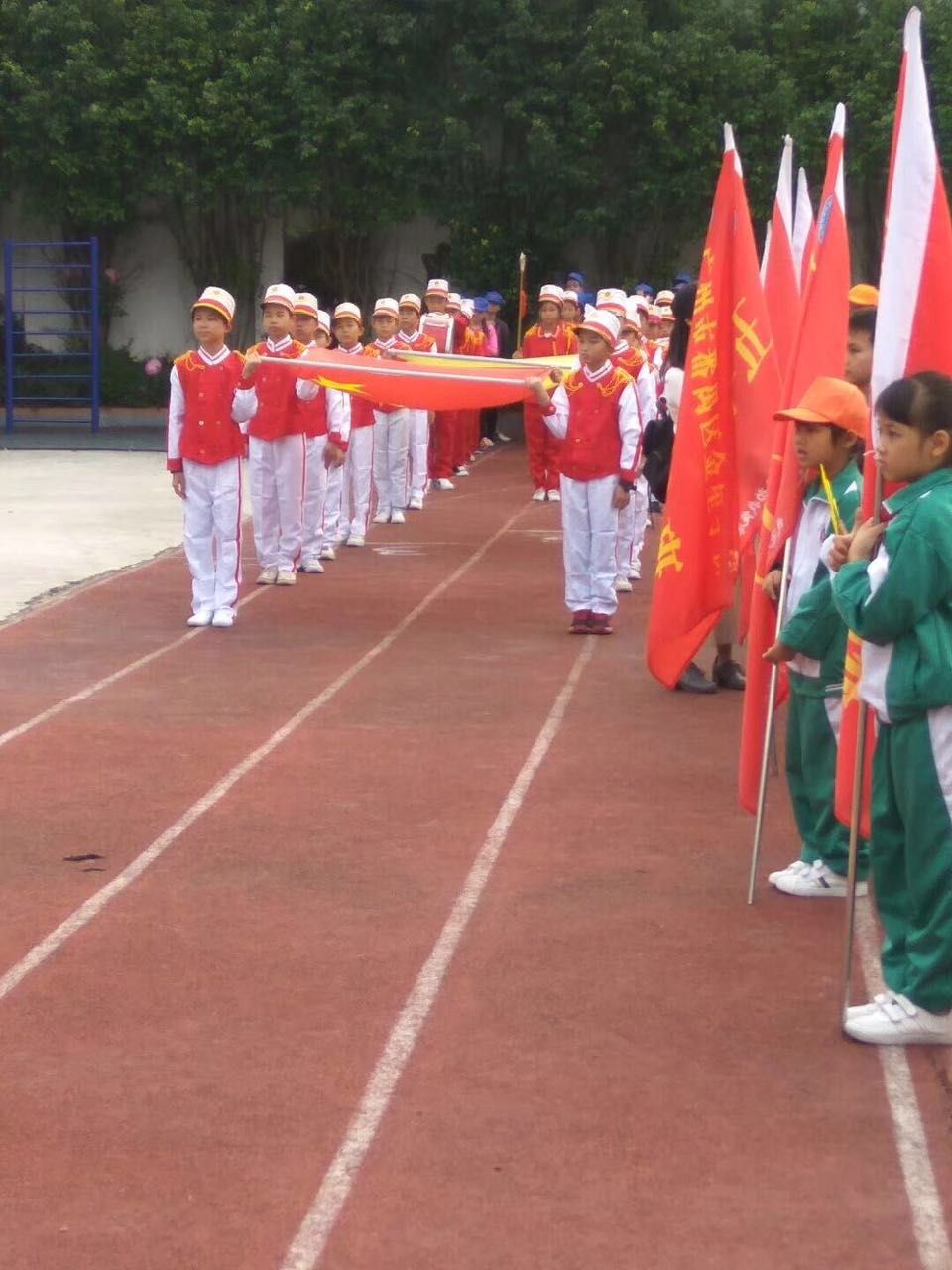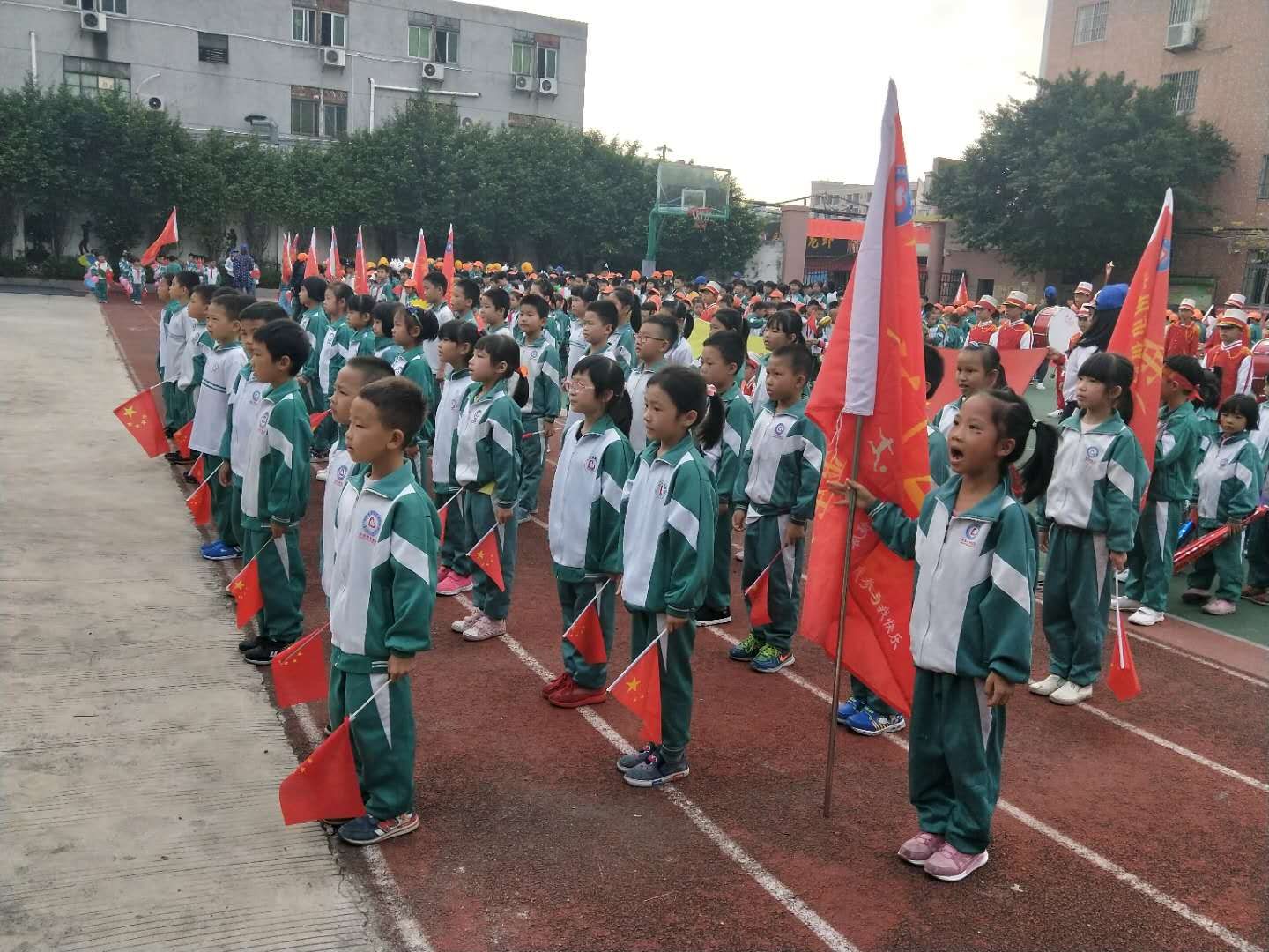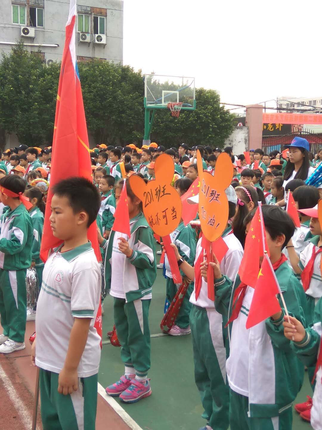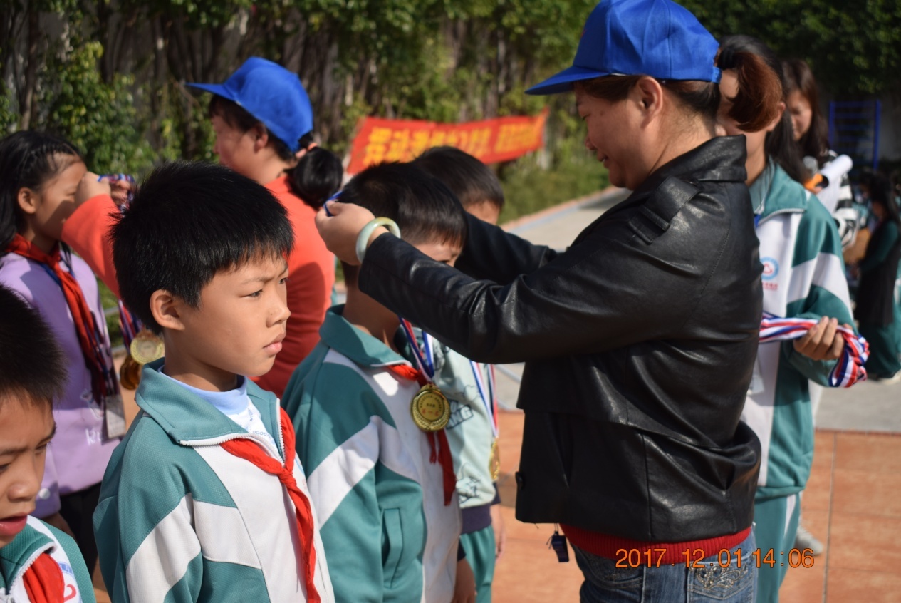 伴随着激昂的《运动员进行曲》,我校趣味运动会拉开了序幕。同学们精神抖擞,迈着整齐的步伐,雄赳赳、气昂昂地喊着响亮的口号缓缓经过主席台,接受校领导和裁判员的检阅。学校邀请了部分家长志愿者到校参与裁判工作,和孩子一起享受这美好的欢乐时光。大会首先由高校长致开幕辞,向全体师生阐述了学校举办这次运动会的实质意义,并提出新的希望。随后裁判员代表、运动员代表分别进行了宣誓,最后在全校师生的欢呼声中高校长宣布了本届校运会的开幕。