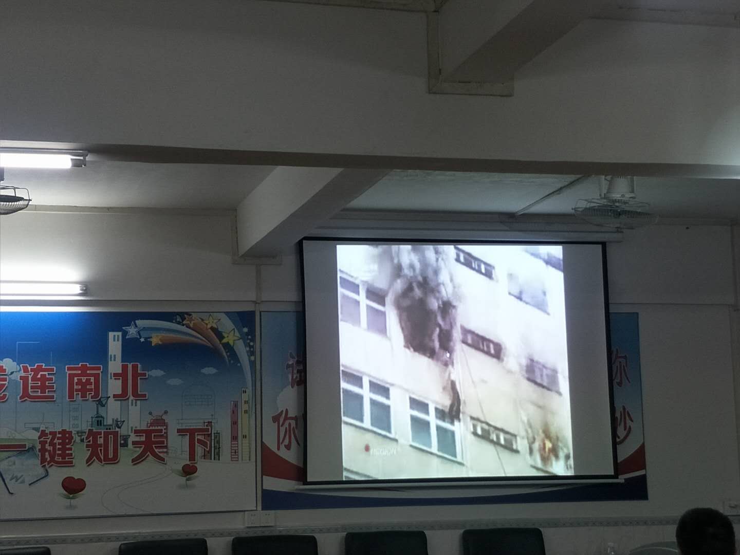 教师们还通过观看相关图片与视频,认真、仔细的学习了消防救生常识。