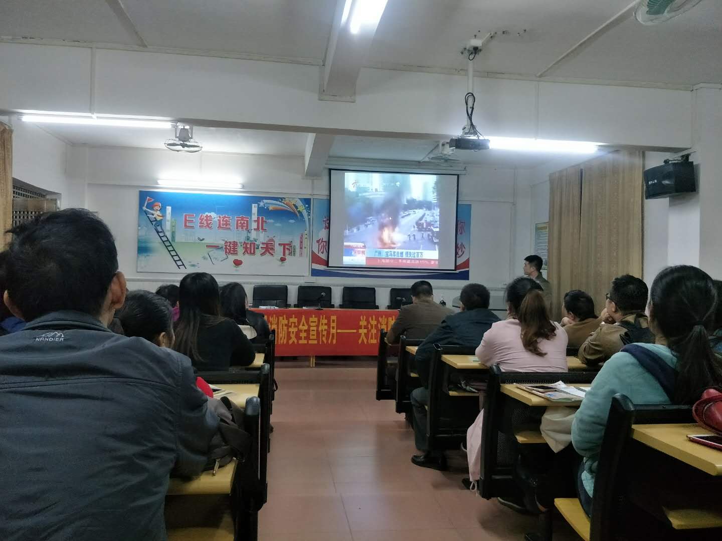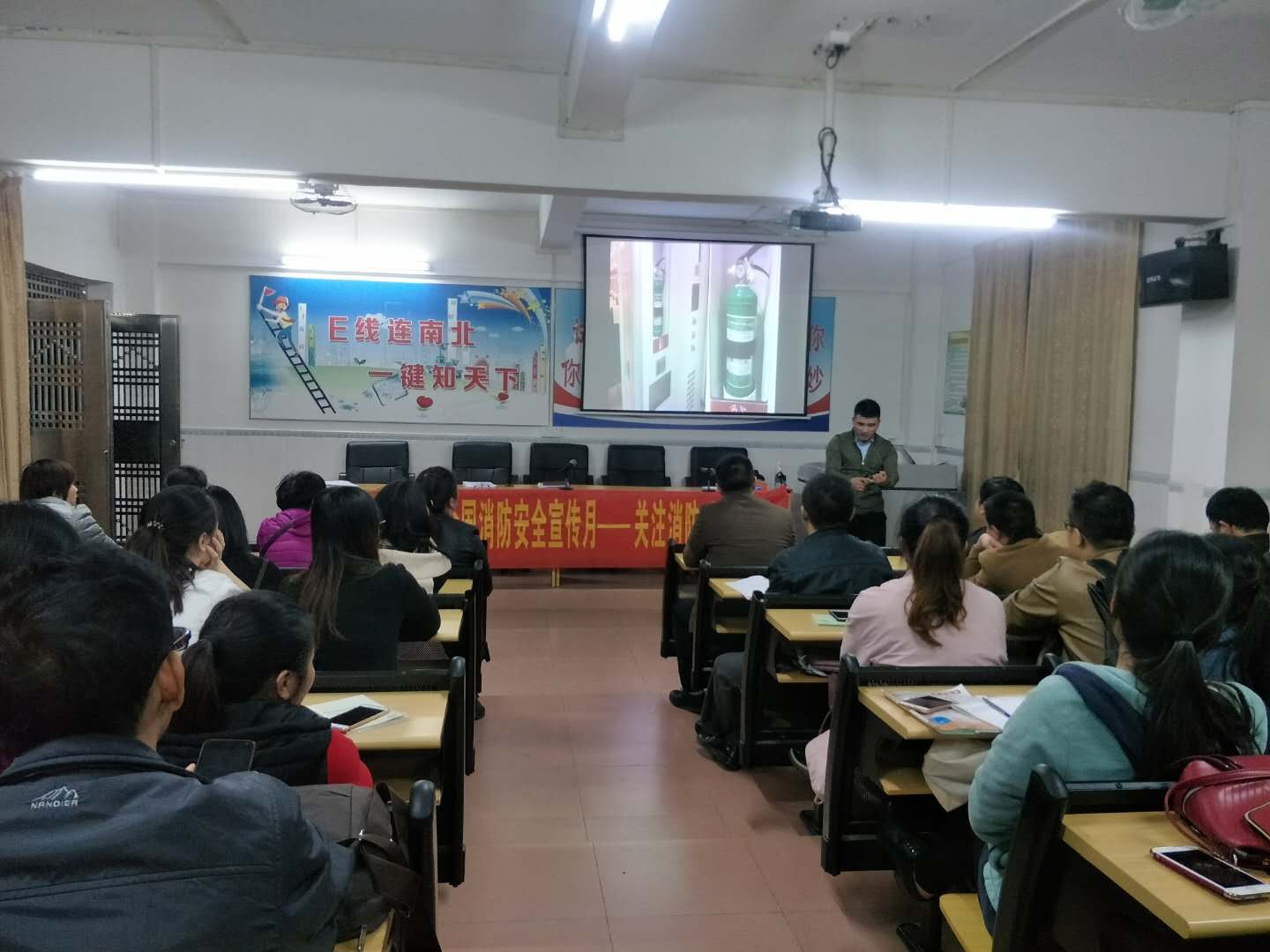 在此次讲座上,邹教官通过引用大量实际生活中的真实案例和具体的数字告诉我们由于缺乏消防安全知识而引发的事故,并通过理论讲解和典型案例剖析相结合的方式,为全体教师上了一堂别开生面的消防安全常识课。