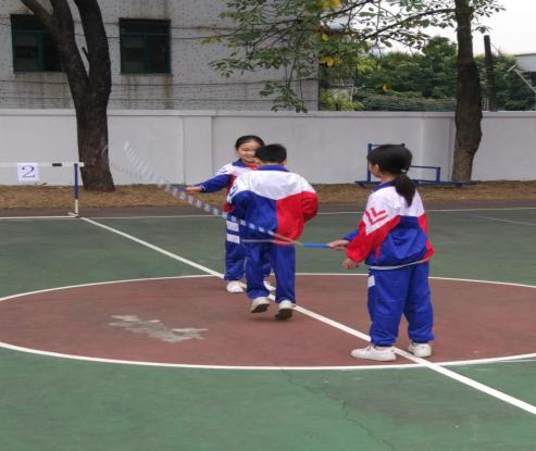 三人合作跳时相互合作,齐心协力 甲组三人合作跳第三名