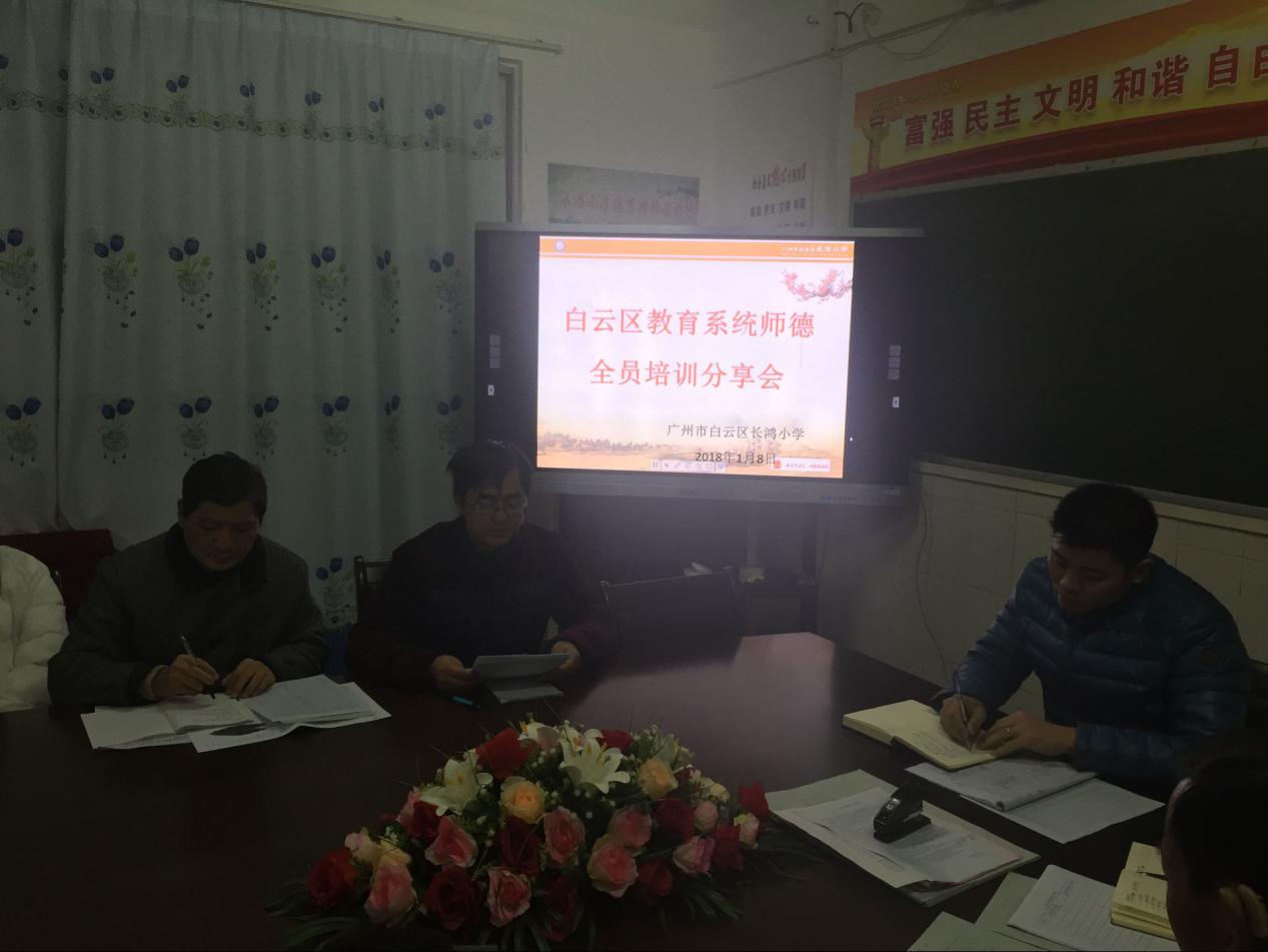 我校通过白云区十二月举办的师德培训,使我校教师整体对教师的职责、师德的内涵又加深了一层新的认识,对教育教学又有了更深的了解。培训结束后我校结合学校教师自身情况,组织培训教师在例会上进行师德培训主要精神传达,并谈心得体会及交流。