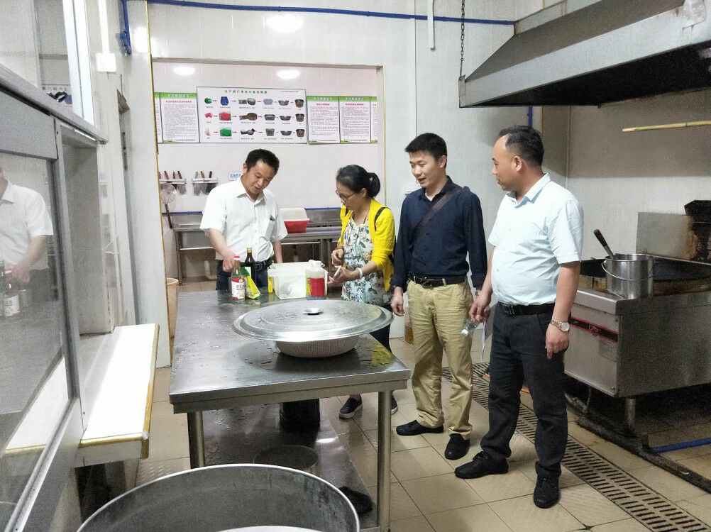 随后,在我校陈主任的带领下,对学校厨房进行了详细的检查,当邱主任等人看到学校的厨房物品摆放得井井有条,各种表册登记详细,食堂环境干净整洁,频频点头称赞。