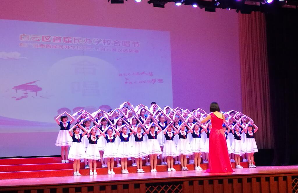 为了更好地检验民办学校艺术教育素质成果,白云区教育局和白云区民办教学协会特举办白云区首届民办学校合唱比赛。4月24日上午,比赛活动如期隆重举行。我校合唱团在音乐陈老师的带领下,精神饱满、朝气蓬勃地奔赴赛场!孩子们用歌声唱出欢快的旋律,用笑脸展示纯真的心灵。