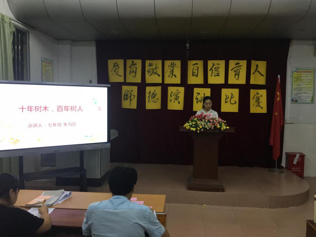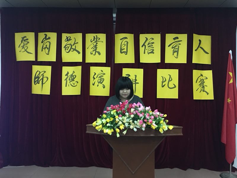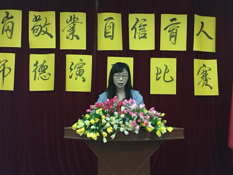 六号出场的是思品老师朱海媚,她演讲的题目是《十年树木、百年树人》。