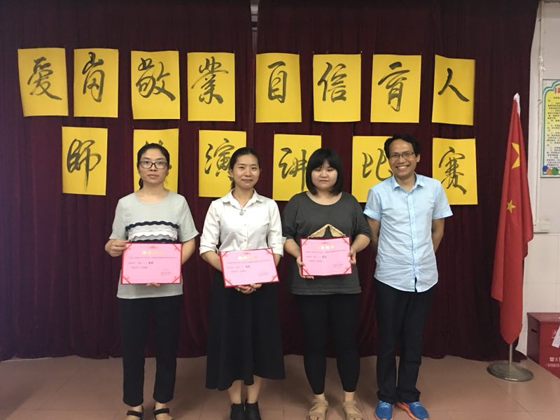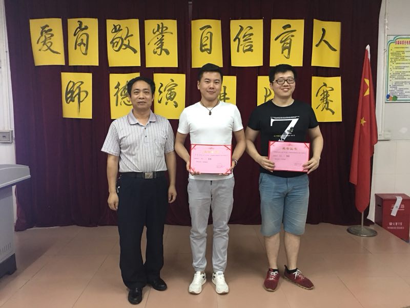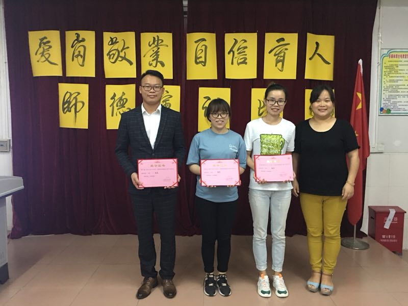 张主任为本次演讲比赛中获得三等奖的老师颁奖。