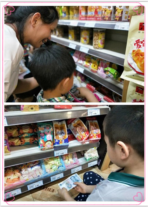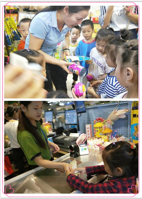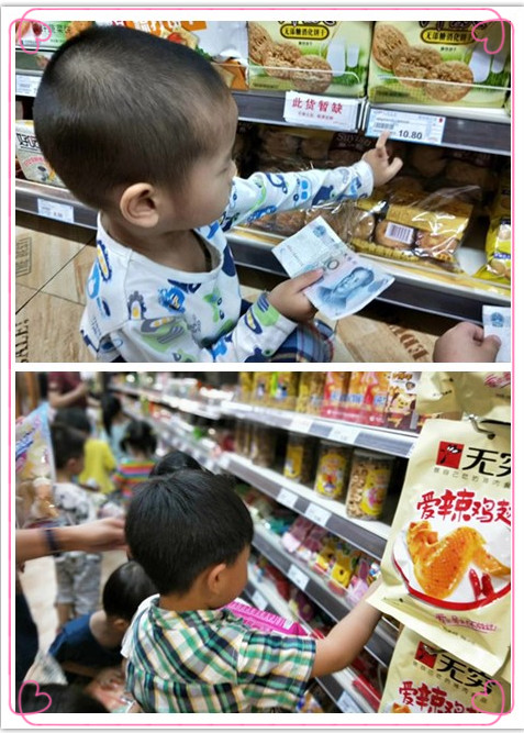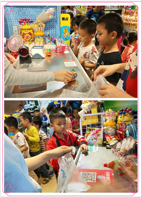 活动前,我们的负责人提前勘察了超市地形和购物路线,与超市工作人员协调,我们的老师们还提前给幼儿渗透了钱币的概念,孩子们带着10元钱,都是迫不及待啊,当然,出发前还要和小朋友温习一下超市购物流程和规范文明购物礼仪的哦。