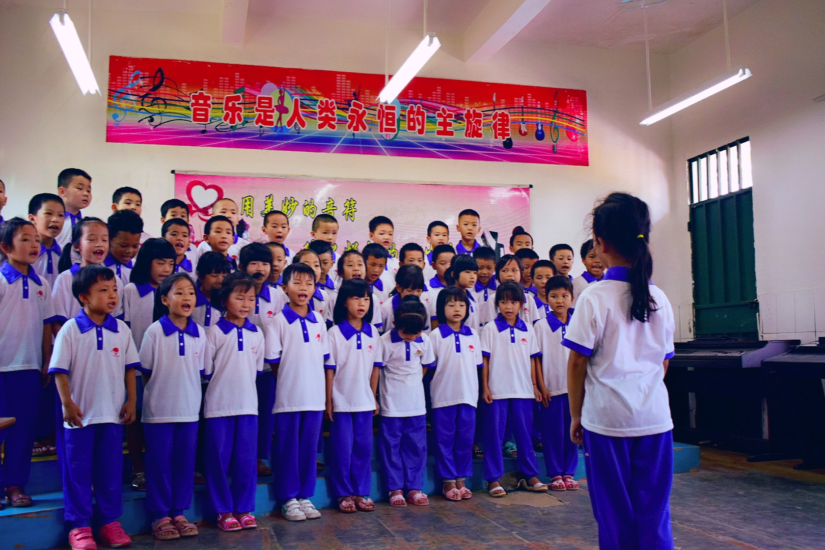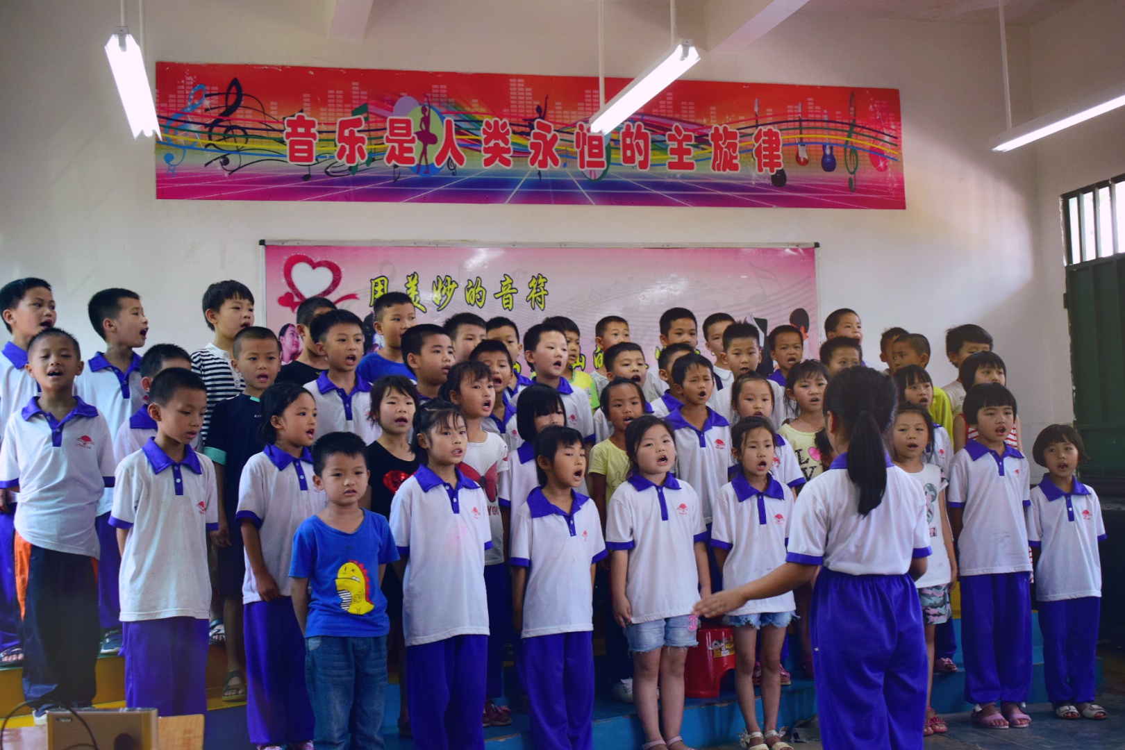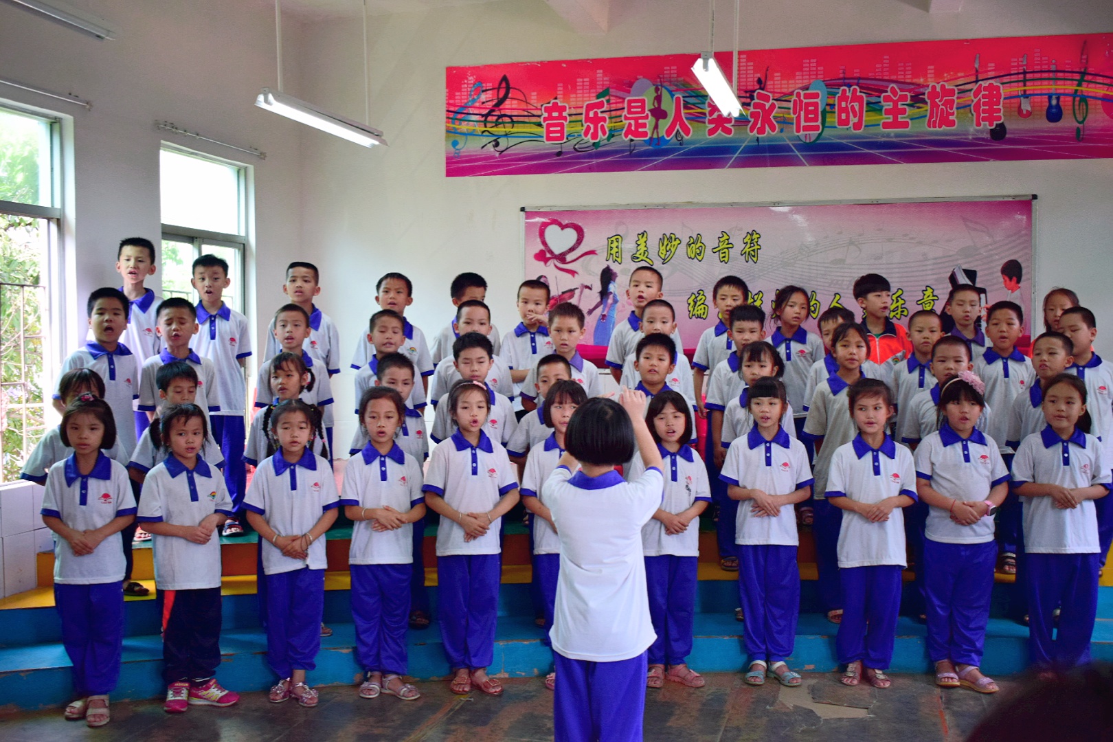 各班都精心准备了诗词歌曲合唱,并加入了指挥、乐器等各种各样的形式表演。《明日歌》的动感旋律中,慨叹着时间的一去不复返;《苔》的励志歌词中,寄托着孩子们对未来的憧憬;《送别》的悠扬旋律中,恰当地表现了离别的哀愁;《新学堂歌》优美的旋律里,透露出少年学习的乐趣;《少年中国说》诠释了中国少年自强不息的风骨、胸怀祖国的志向;《岁月不待人》抒发着劝诫少年及时当勉励之情......