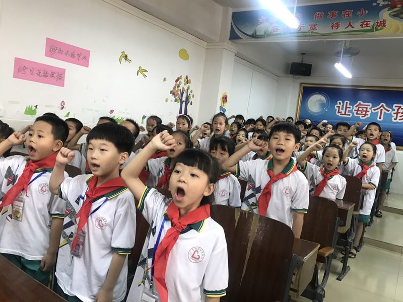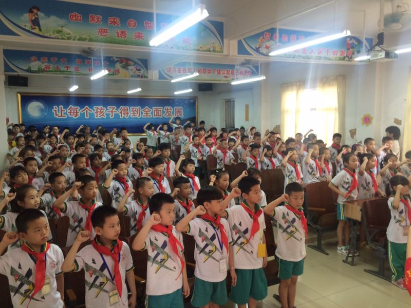 首先进行的新队员入队仪式拉开了活动的序幕,133名同学在这个特殊的日子里光荣地加入了中国少年先锋队。新队员整齐排列在队旗下,老队员为新队员佩戴了红领巾并进行了庄严的宣誓,铿锵有力的声音表达了他们的心声。郑校长代表学校及老师为孩子们送上了节日的祝福,也对孩子们提出了殷切的希望,要求同学们倍加珍惜今天的幸福时光,不辜负祖国的重托,不辜负父母的期望,不辜负老师们的教诲。