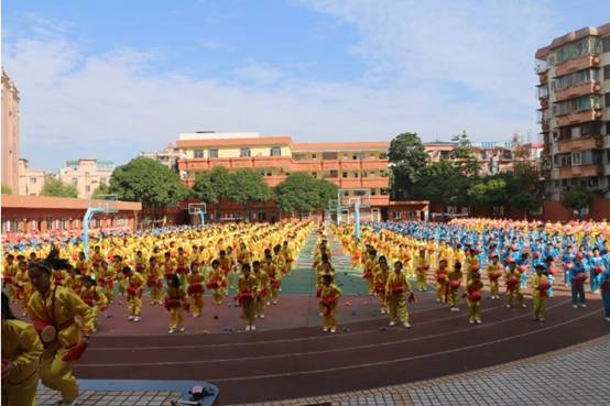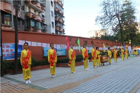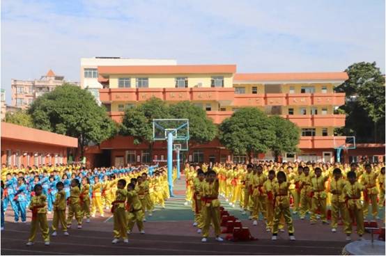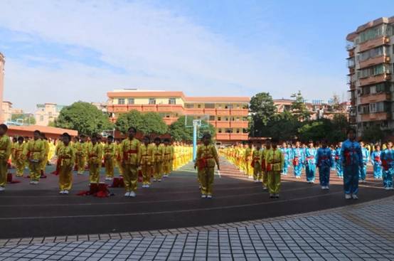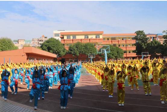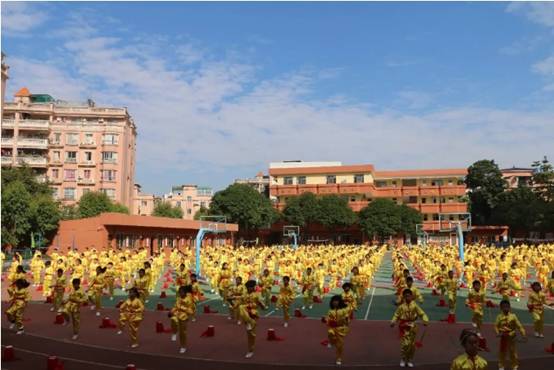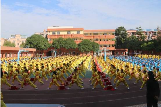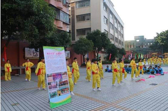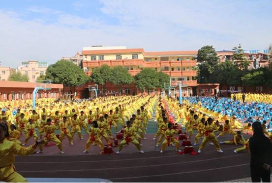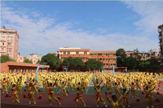 首先展示的是国学“三字经”韵律操,学生通过肢体动作把传统文化的思想精粹表现得淋漓尽致;
