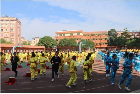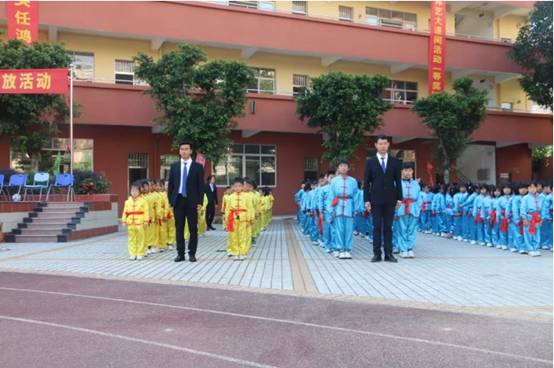 活动首先由卢贵松主任致欢迎辞,简短而又热情洋溢的致辞,赢得了师生及嘉宾们的阵阵掌声,随后卢主任用铿锵有力的声音宣布了大课间活动的开始。