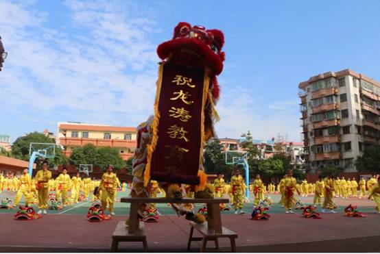 最精彩的当属醒狮,动作刚劲,神态多变,时而跳跃;时而腾空,一不留神,只见狮子腾空而起,跳到了高高的凳子上,吐出了“祝龙涛教育集团明天更辉煌”的竖联,把此次活动推向了高潮。