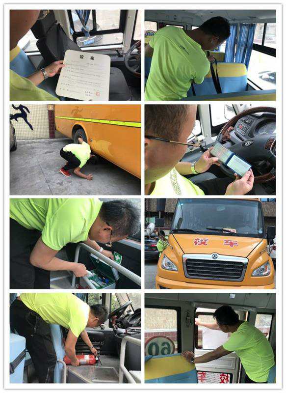 (跟车老师黄才智对校车进行了全方的检查)