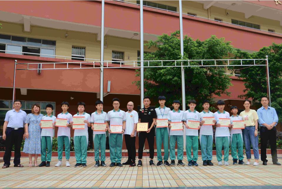 广州亮一剑公司武术总教练林祥山先生给荣获2019年番禺区中小学生武术锦标赛获奖的集体和同学颁奖。