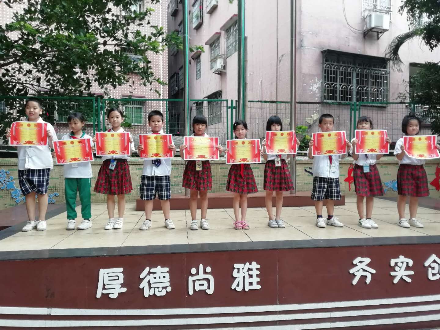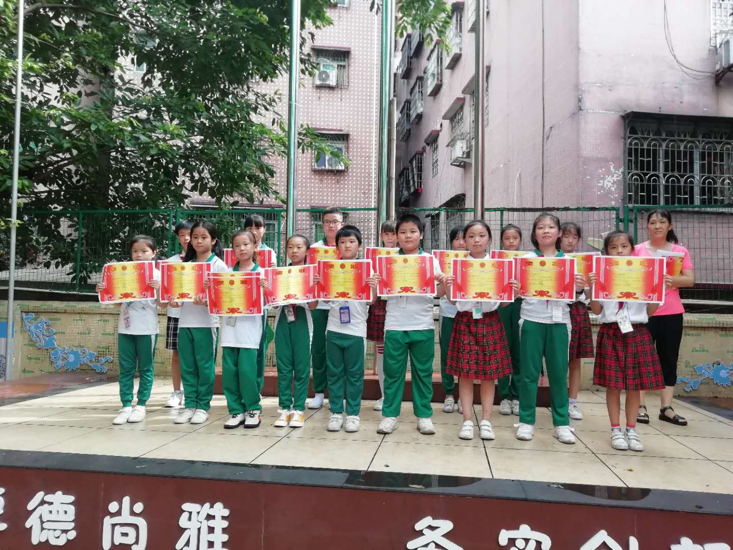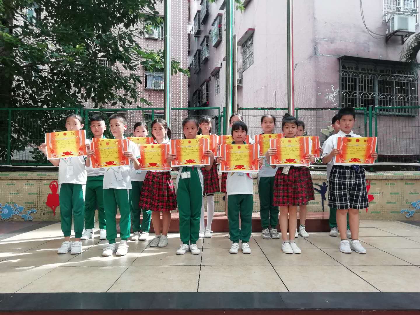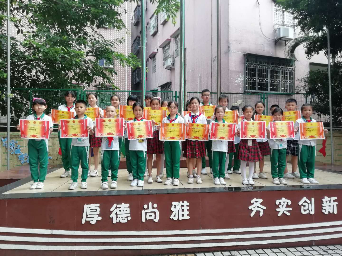 2019年6月3日,学校举行完升旗仪式后,英语科组长熊老师分别宣布了上周英语竞赛各年级获得一,二,三等奖的学生名单。随后学生分别上台领奖,熊老师负责颁奖。