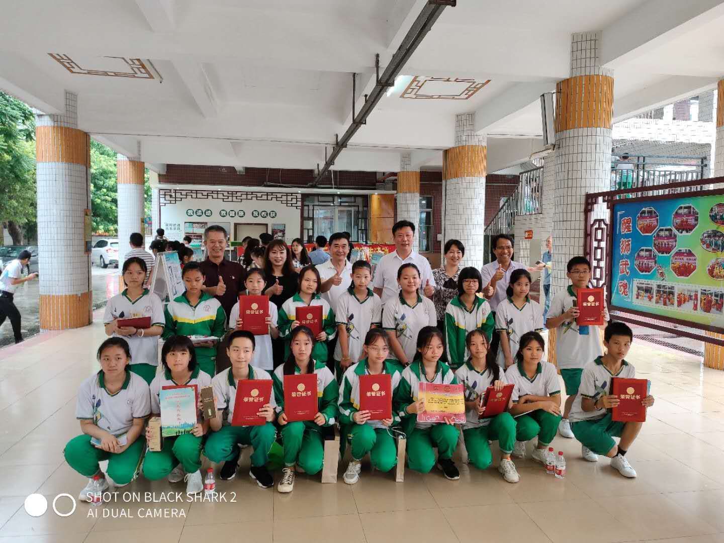 6月26日上午9点30分,黄石街在马务小学开展“黄石街‘6.26’国际禁毒日宣传活动暨黄石街中小学禁毒主题创意大赛颁奖仪式”颁奖仪式结束后,黄石街副调研员孙银桥、黄石街武装部部长邱名敦、黄石街人大工委主任于少雄、新市教育指导中心卢月明、马务小学校长邓惠贞等与获奖学生一起合影留念。