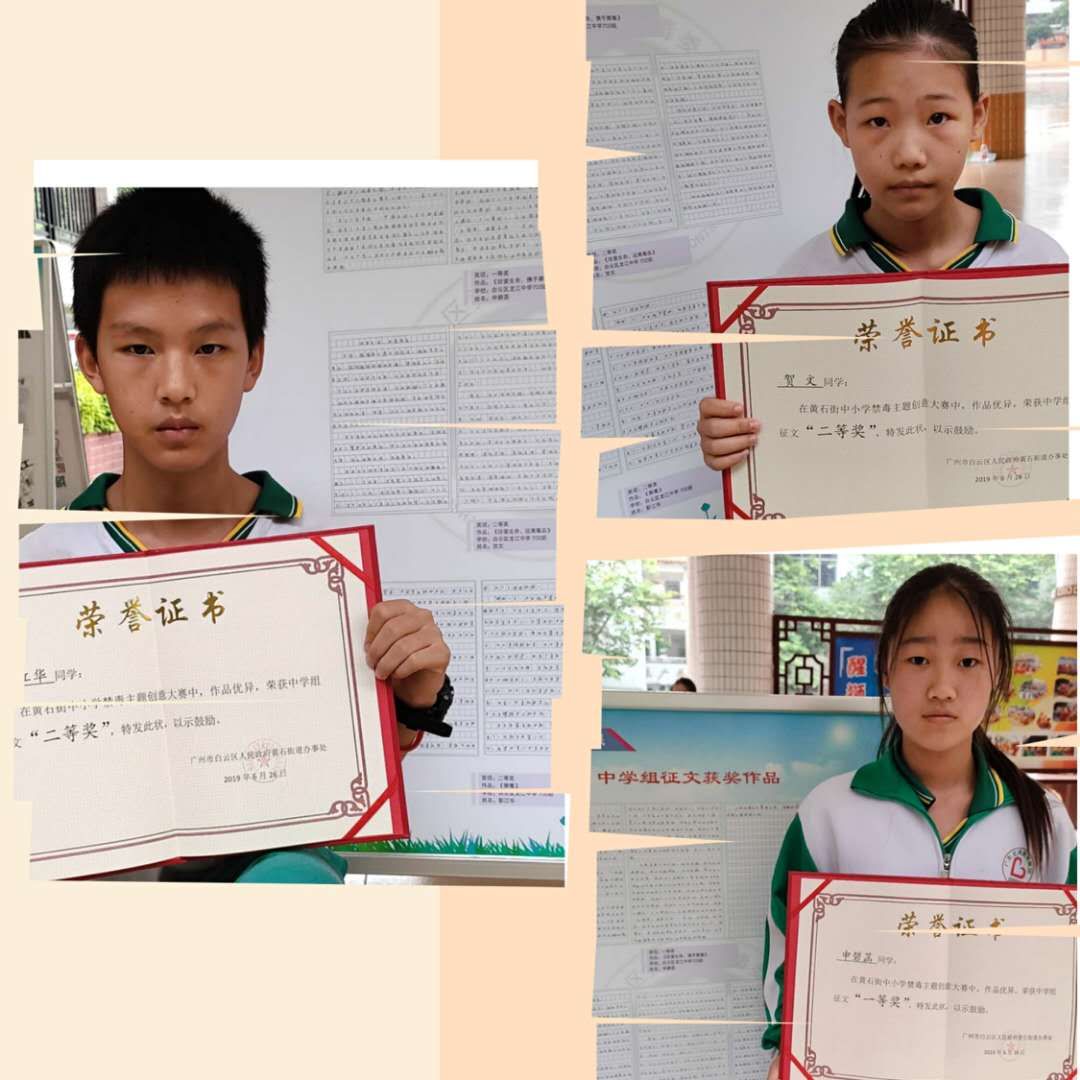 为进一步提升青少年禁毒教育工作效果,开展形式创新、内容丰富的禁毒宣传活动,激发广大青少年对禁毒宣传的热情,强化禁毒意识,黄石街禁毒办于3月19日制定了中小学禁毒主题创意大赛活动方案,由辖内中小学生以禁毒为主题创作手抄报、绘画、征文三种形式的作品参赛。我校以此为契机,组织我校学生积极参赛,先以班级为单位进行初赛,然后各班选拔推荐,全校共上交了36副作品,在参赛的众多作品中脱颖而出,其中有14副作品分获大赛的一、二、三等奖。
