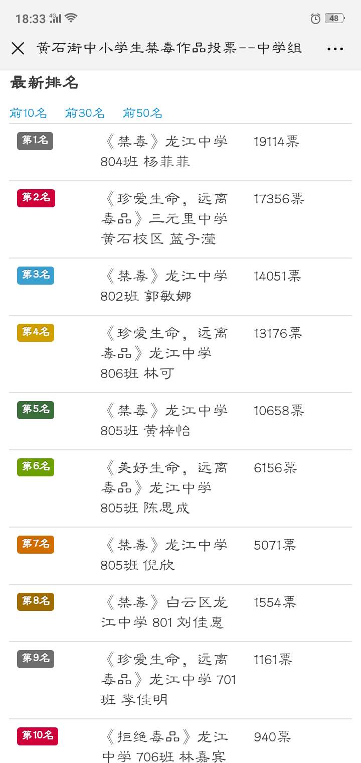 附:龙江中学参加黄石街中小学禁毒主题创意大赛获奖名单